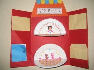 アイスやクレープが出来たら色画用紙をつかって、お店をつくってみよう。