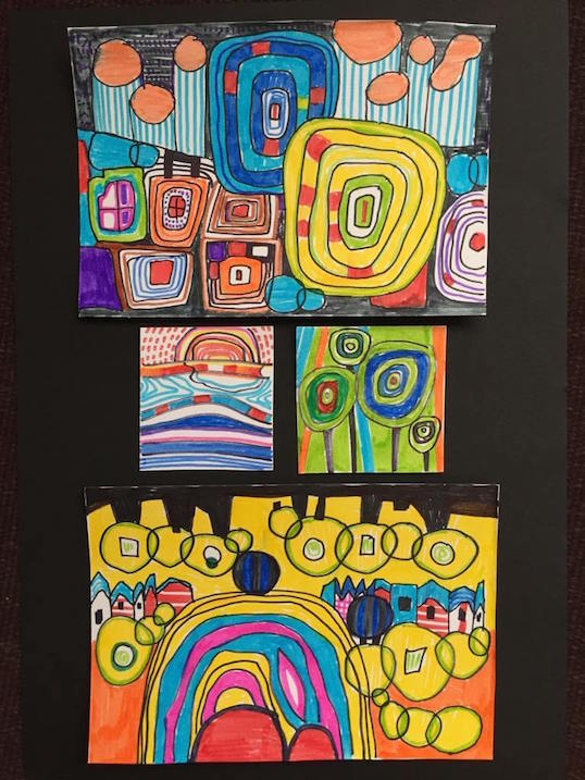 フンデルトヴァッサーの作品を見せながら、どんなものを描いて、自分はどう思ったのか話します。