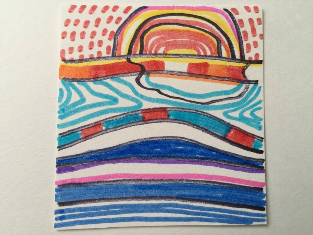 まずは小さい画用紙に、沢山模様を描いてみましょう。