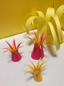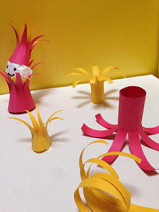 ペタンコの紙が色んな形になる。紙をちょっと残しできれる。紙をクルンとまるめることもできる。