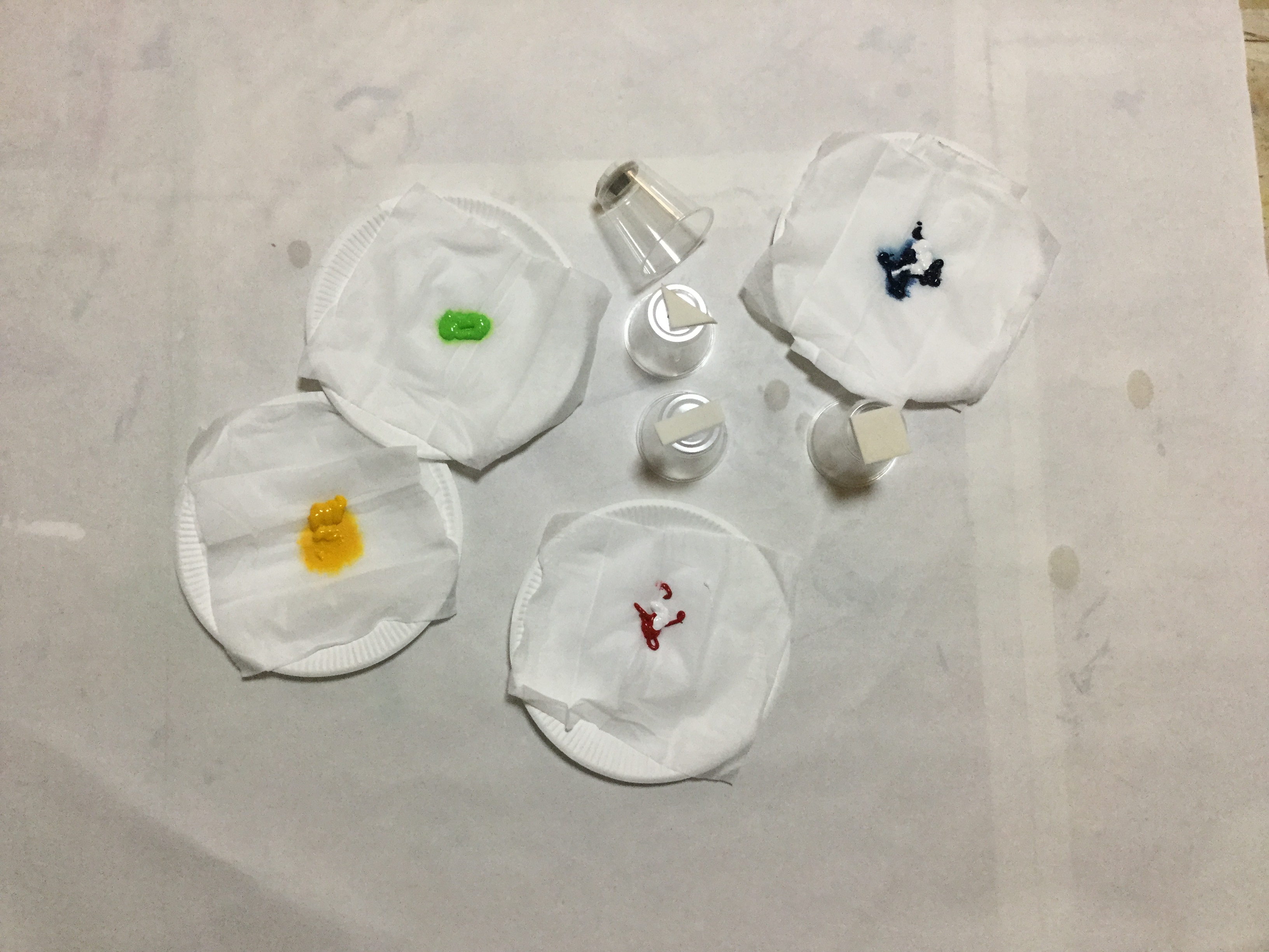 〇△◇でデザインをしていきます。ポンポン押して楽しい作業で気軽にデザインをしていきます。 スタンプしながら、だんだんと色を選び、形の順番を選び、、数枚繰り返しながら組み合わせのデザインを学んでいきます。