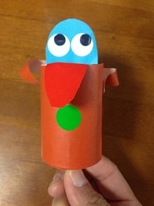 トイレットペーパーの芯を利用した工作。真の中から出てくるものは何かイメージして制作する。いないいないばあの感覚で楽しむ。・仕組みを見せて、構造を理解する。・自分の作りたいものをイメージする。・制作する。・完成したら、お互いに見せて楽しむ。