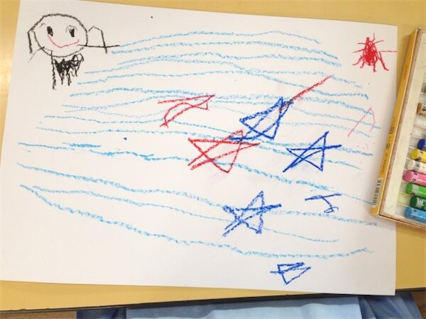 ②寒い寒い風さんをイメージして寒い色を使って表現してみよう