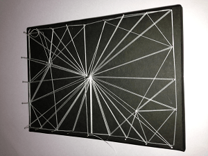 パネルに釘や虫ピンを等間隔で打ち込む。様々な色の毛糸や縫い糸を繋ぎ合わせて、パターンデザインを行なう。クリスマスバージョンも出来る。