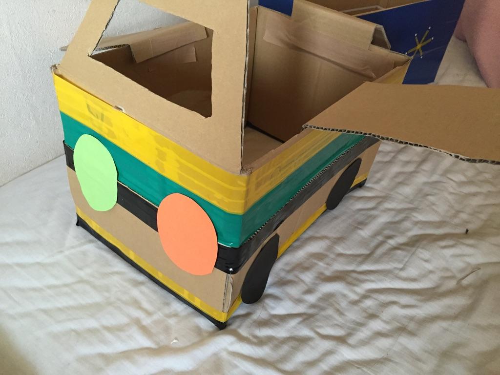 段ボールなどで自分の入れる乗り物を制作!