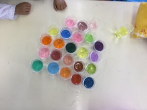きれいにできた色水を全部きれいに並べたいね!