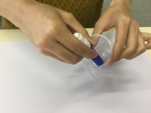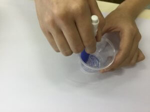 味付けだ~。コップの内側にいっぱい味付けするんだぞ~。まず3つ程度のカップを渡して