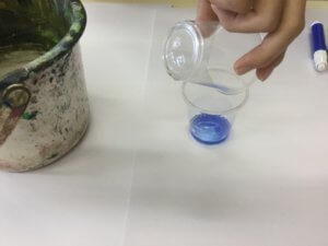 ●カラーペンで自分で色水を作る。色水を混ぜ新たな色を作る