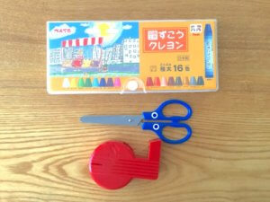 ・クレヨン(カラーペンでもOK)、はさみ、(セロハンテープが個人のお道具の園は各自用意)