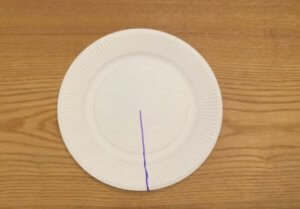 ②お皿の半分まで線を引いておく。