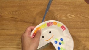 身近な素材(紙皿)を使ってくるくる回るおもちゃを作ります。