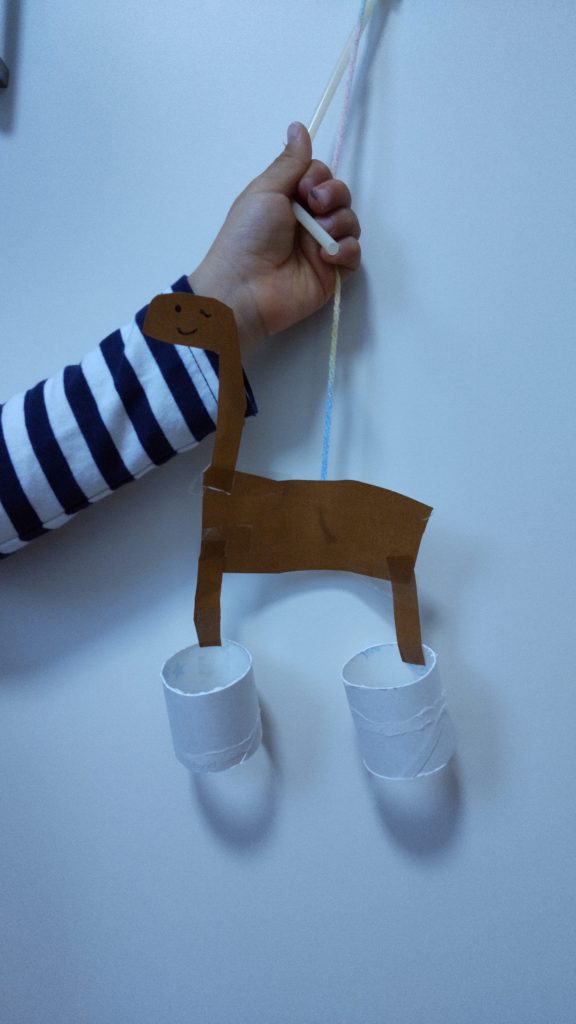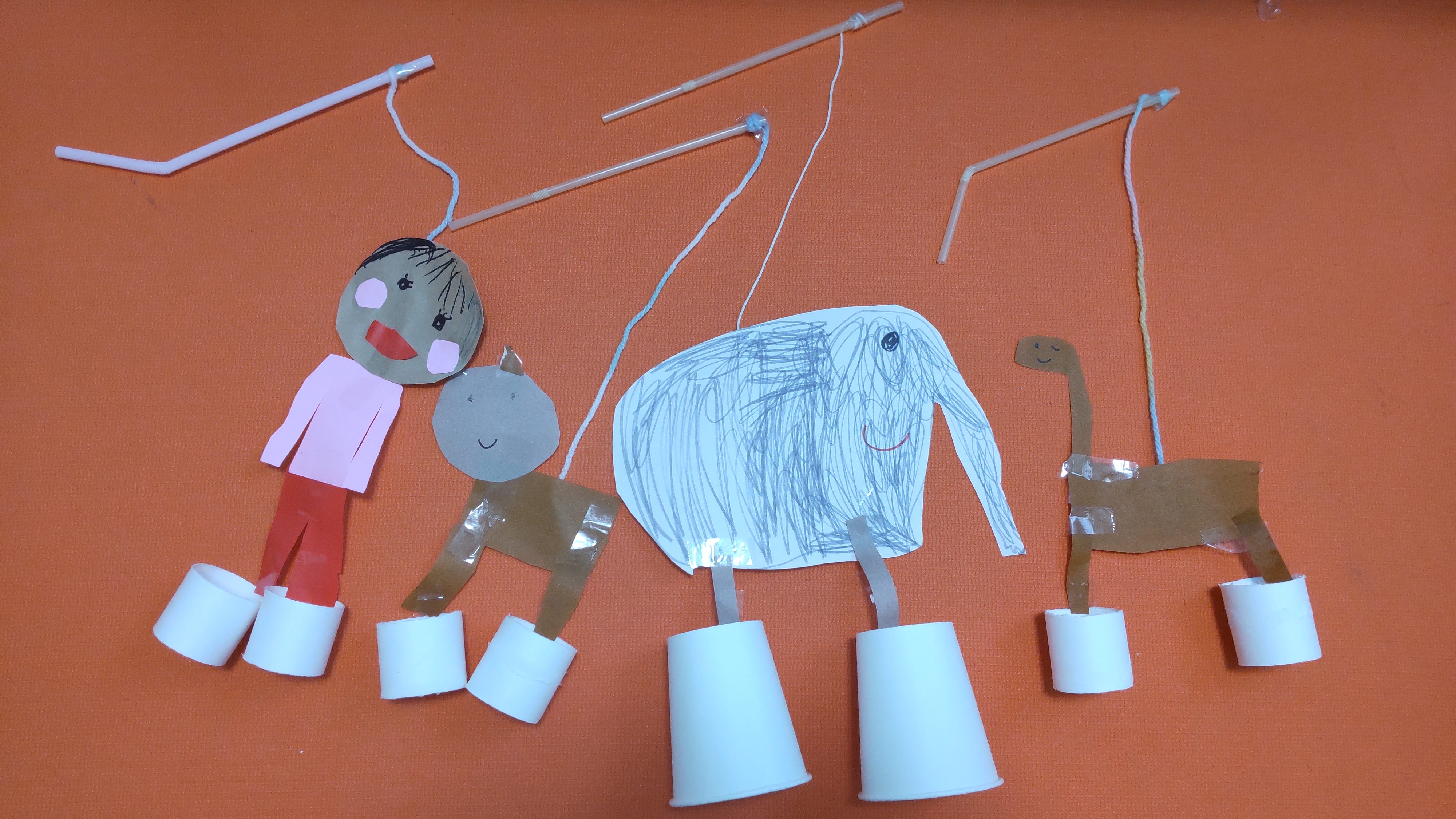 おおお、こんなにたくさんつくったんだ! すごい! みんなでトコトコこうしんしたんだね! ぞうはおおきいからコップのあしで、ほかのはトイレットペーパーのしんにして、つかいわけたのかな?