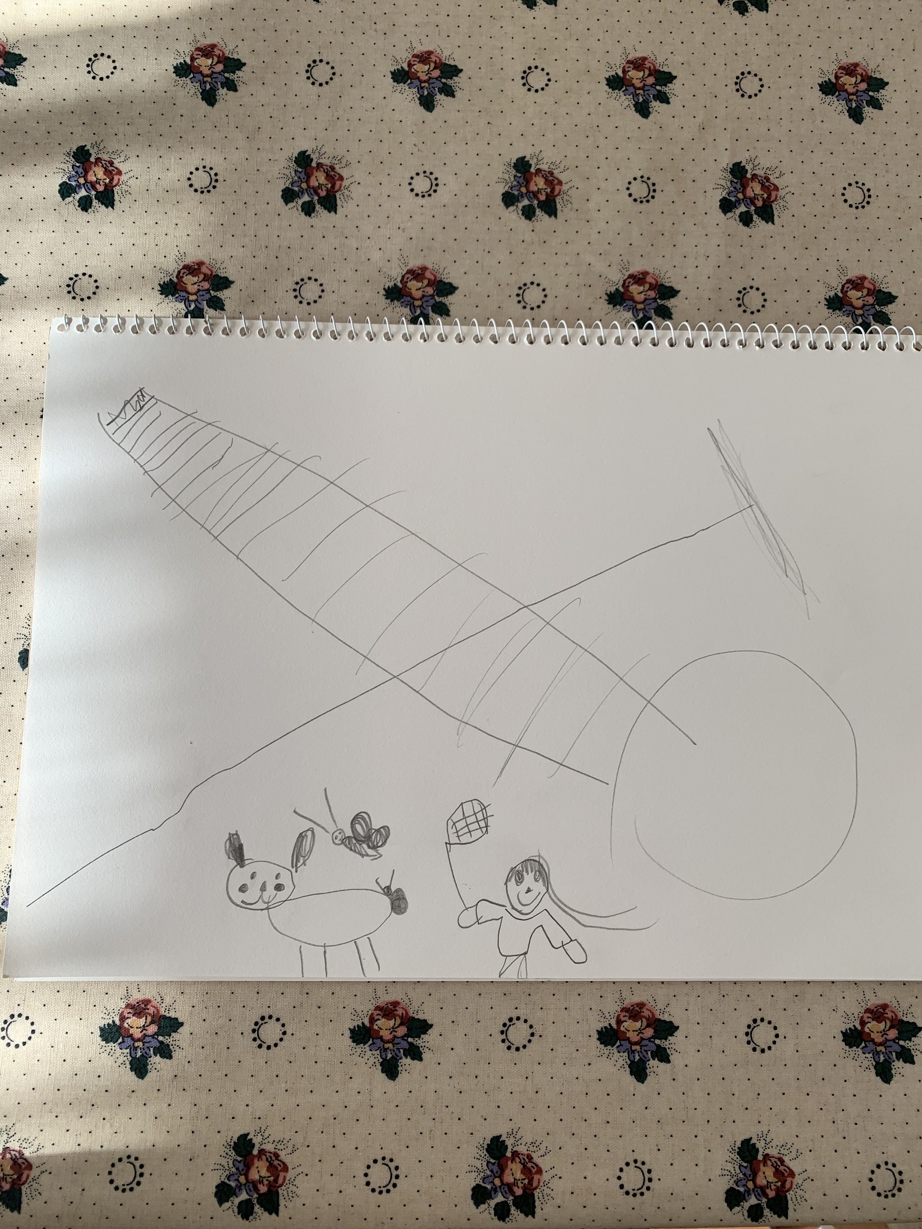 長ーいローラーすべり台なので、その印象が絵に出ているようです😁