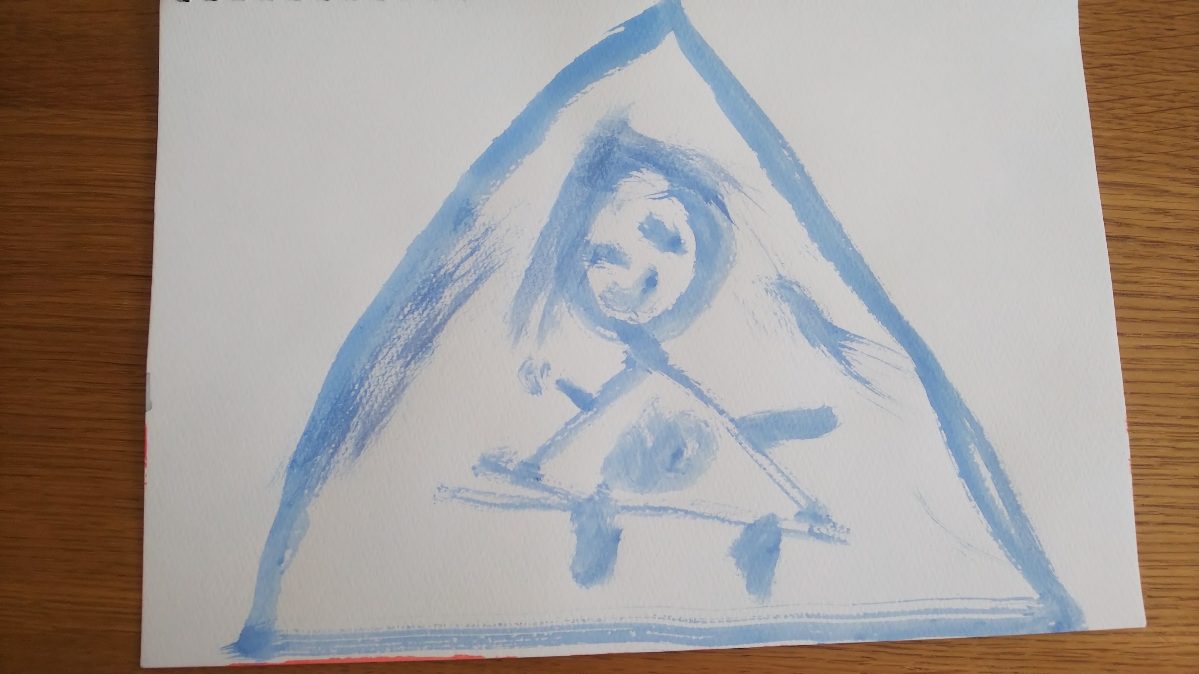 ②『妖精のトライアングル?』水色で、一気に描きました。