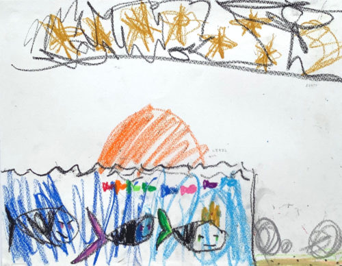 みずほ先生 先生2021年2月14日 6:32 PM とってもかっこいい作品です! 題名もステキですよね。 こんなことを考えながら描いているんだなぁと ハッとさせられました。 太陽がしずんで夜が来る瞬間を描いています。 普段からよく観察しているのがわかりますね。 またその瞬間を「美しい」と感じているのではないでしょうか。 素晴らしいと思います! 砂浜と海の部分を分けて描いていて 海の中を見えるように描いています。 どのように空間や因果関係を捉えて描こうとしているのか、 「今」の成長が見て取れます。 ログインして返信する ↓