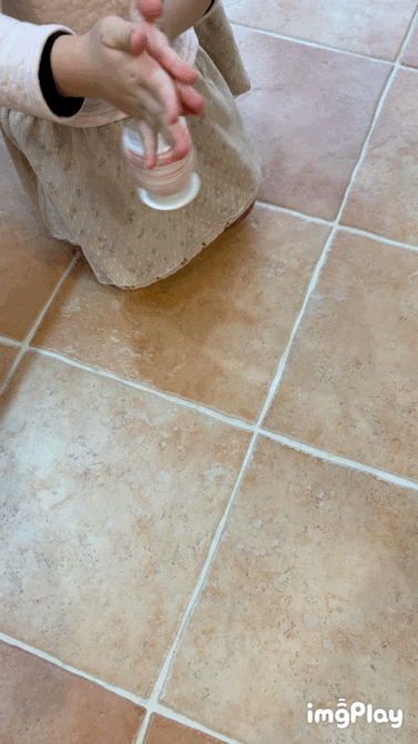 ヨーグルトの容器のコマ、よく回ってるし、回し方も上手ですね! すごい!!