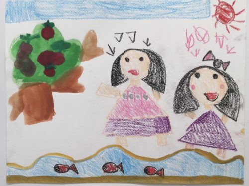 ママとゆめかがうみにきたよ