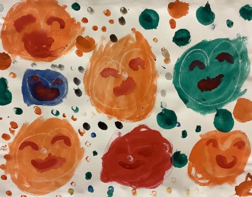クレヨンのはじきえや、ゆびさきにえのぐをつけてとんとんしたり…