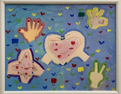 2022年8月19日 11:00 PM こんにちは!カラフルな作品ですね〜! 一つの手で表せるものだったり、二つや四つの手を組み合わせてできるものだったり・・・ 他にはどんな気持ちが表せるんだろう?想像できて楽しい作品です☺️ それぞれのつめに色がぬってあって、とってもきれい〜!マニキュアかな? よく見ると左下は、むらさきのつめなのかな?と思ったけど、青の子、緑の子、赤の子、黄色の子で協力しているんだね! 背景のハートがとってもキュートでかわいいなぁ〜💕 ログインして返信する ↓