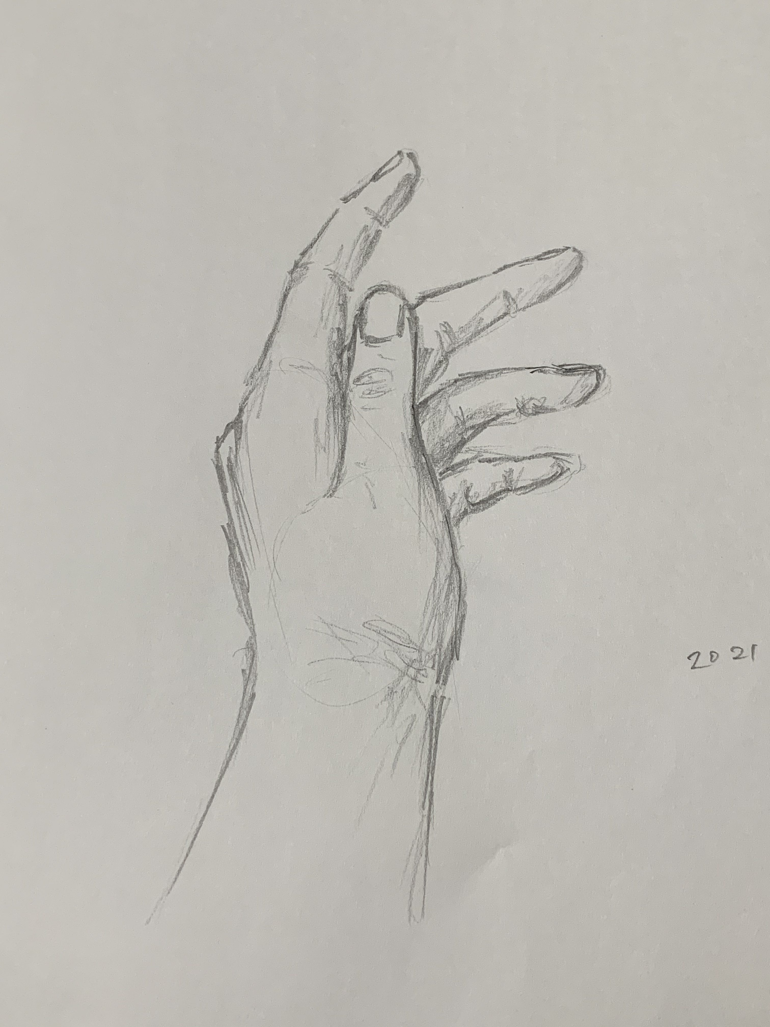 手をかたちづくる線に強弱があり、絵としての表情が生まれていますね!🙌