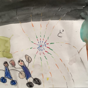 まっくろな夜空とカラフルでピカピカな花火がすてきな作品、見せてくれてありがとう〜!!