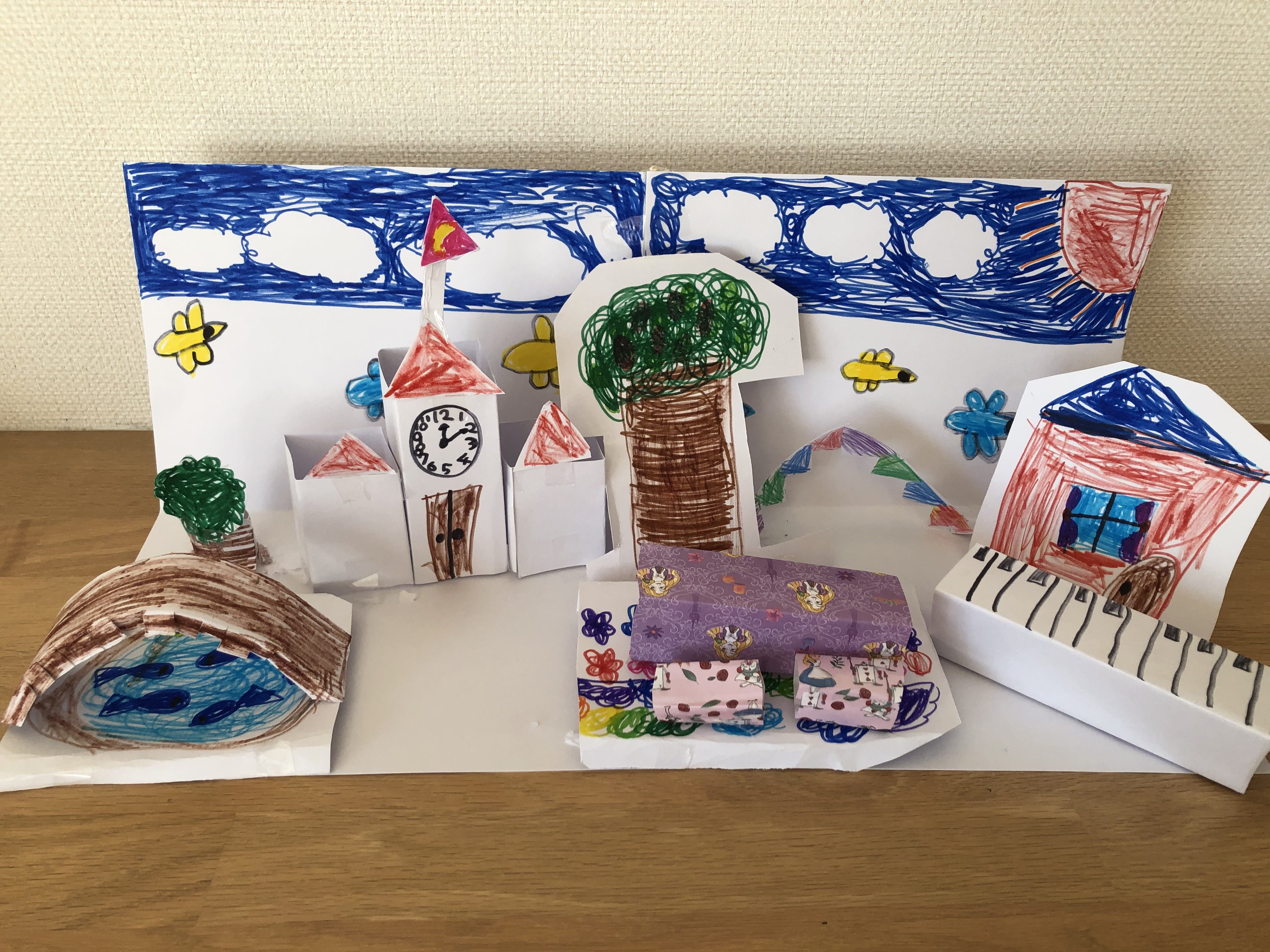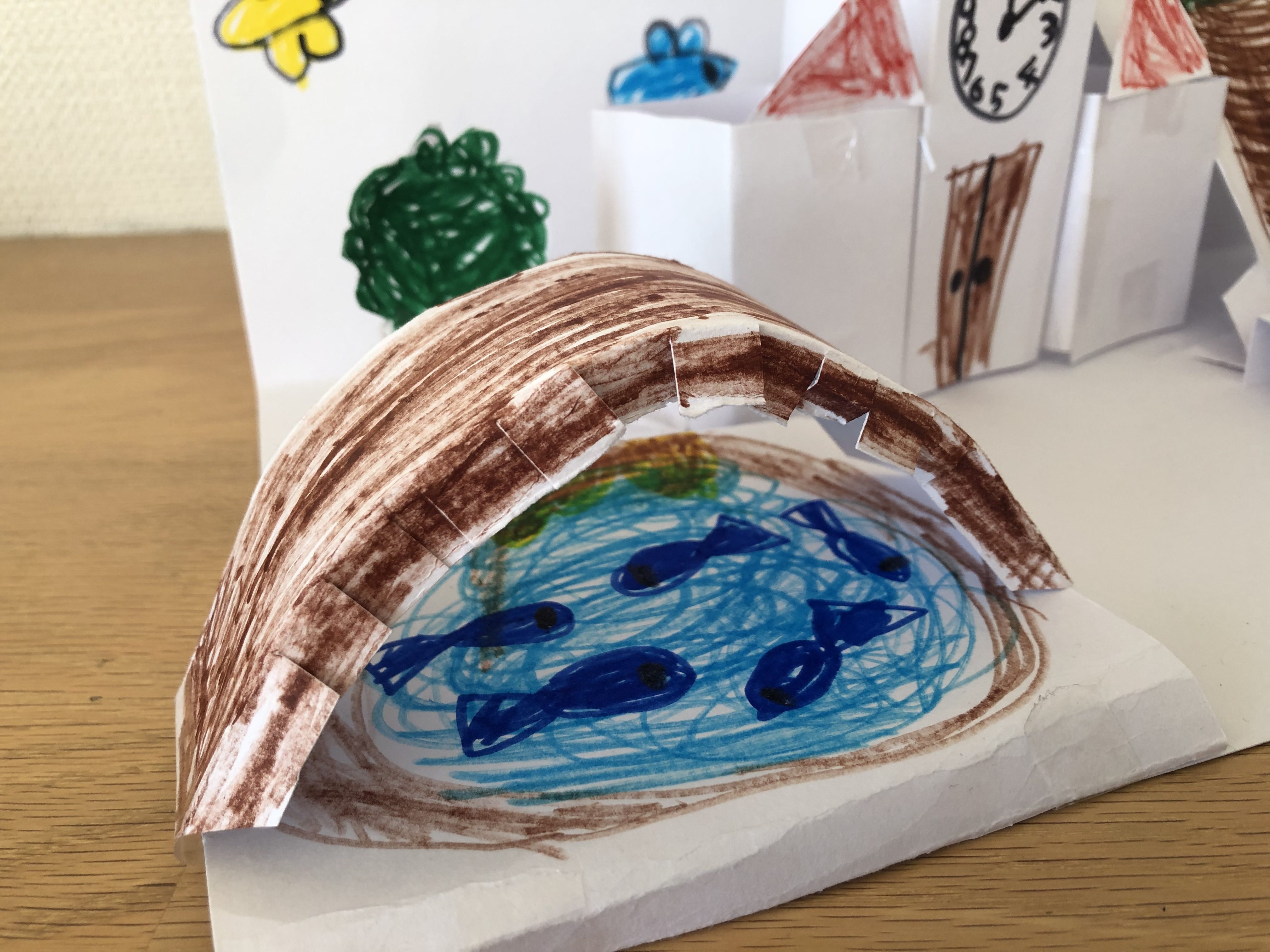 ポイントは「橋を頑張った!」「倒れないように裏を割り箸で支えたの。」と、嬉しそうに話していました。