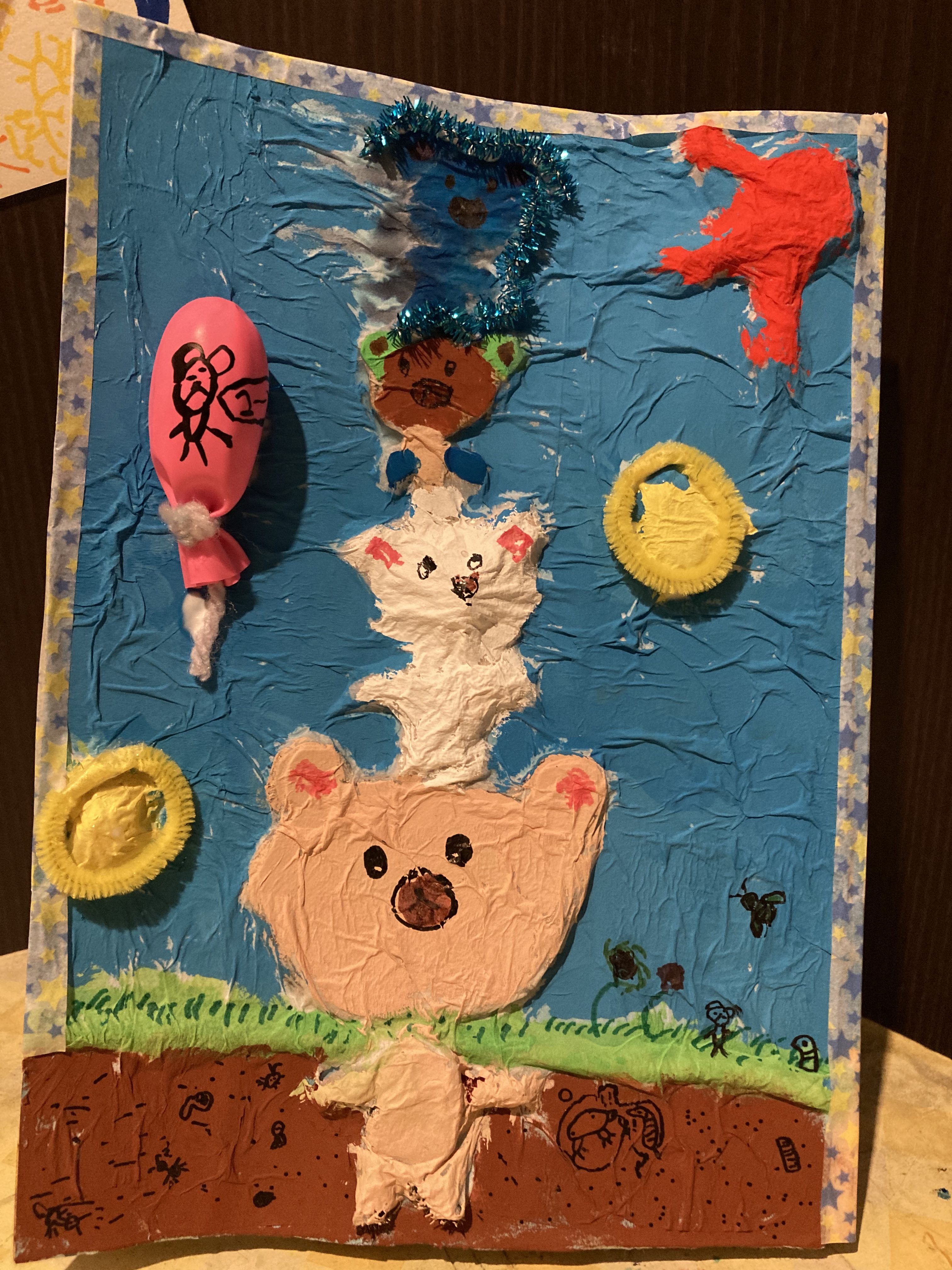順子先生 先生2021年3月5日 1:42 PM カミゴジくん、こんにちは! いつ見ても素晴らしいな~このミクストメディア作品!! くまちゃんの形、どうしたらこんなかわいく作れるの~!? 本当すごい!! そしてそしてびっくりなのは、この風船!! このアイディアすっごくいいね!! 土の中の生き物をペンで描いているのもグッド だよ! いつも素晴らしい作品を作って見せてくれてありがとう! これからも楽しみにしています ログインして返信する ↓