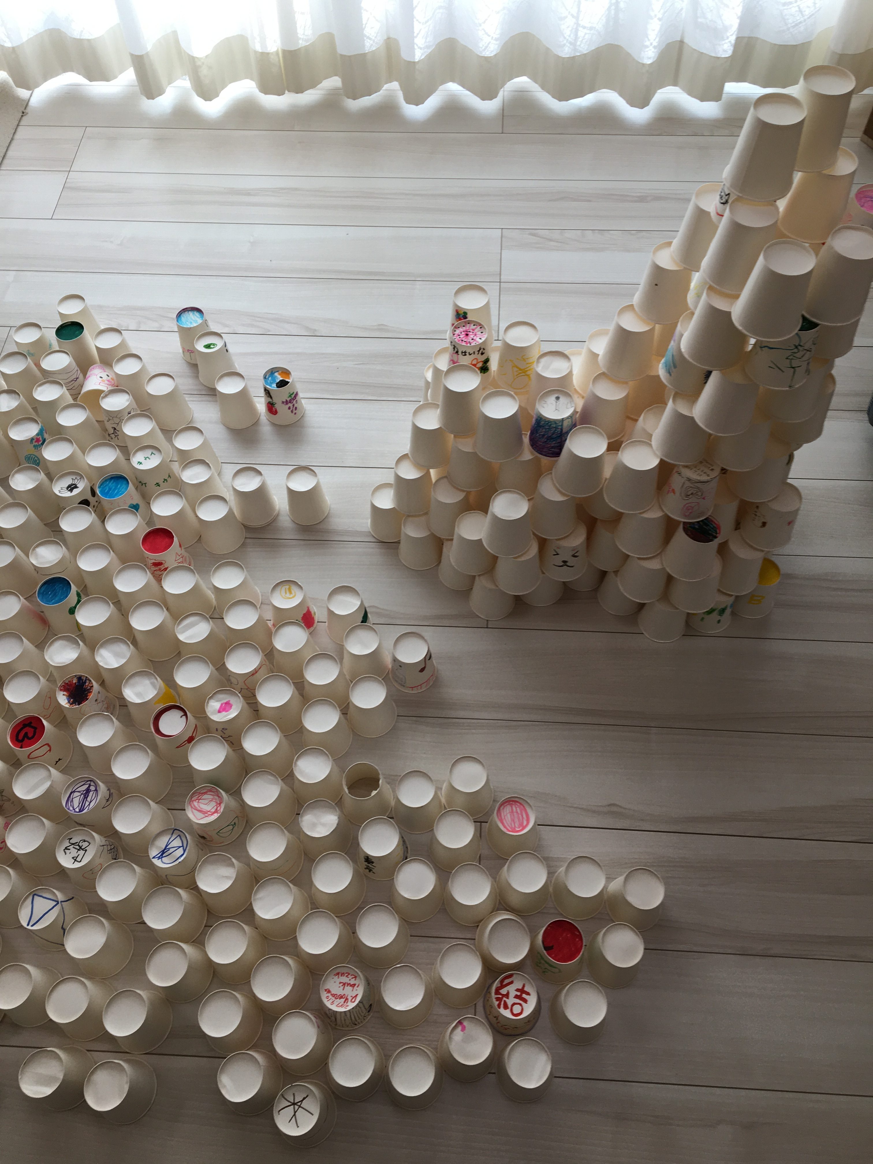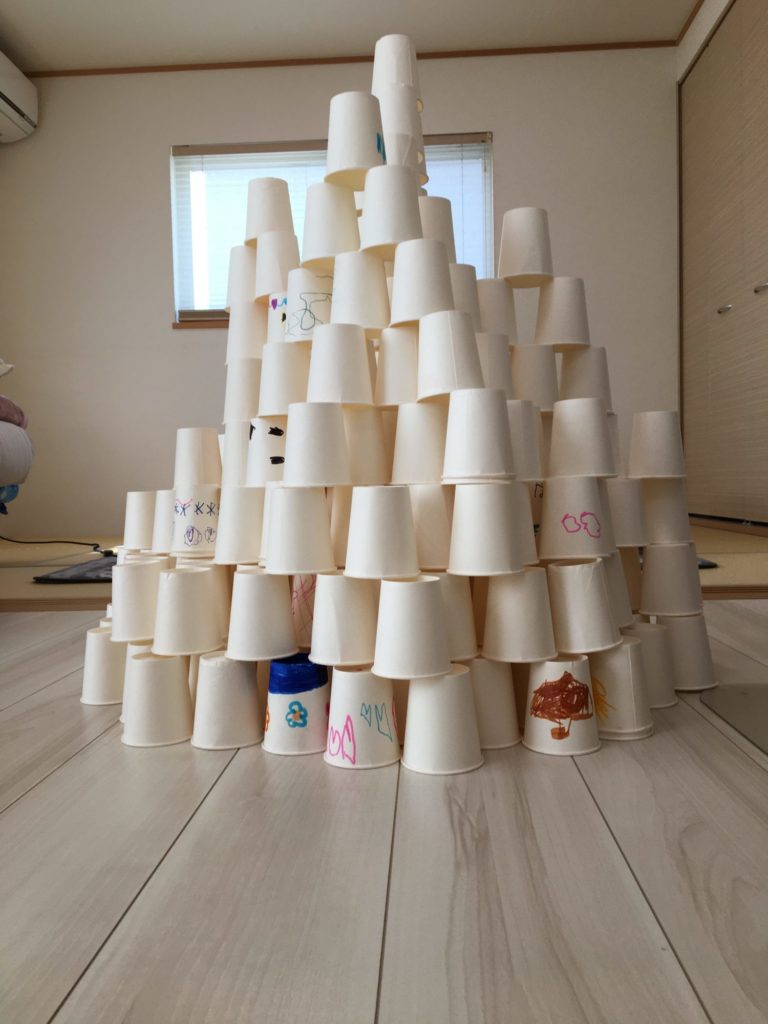 320個の紙コップを並べるのも、積み上げるのも、崩すのも、元に戻すのも楽しくて、時間があっという間でした!