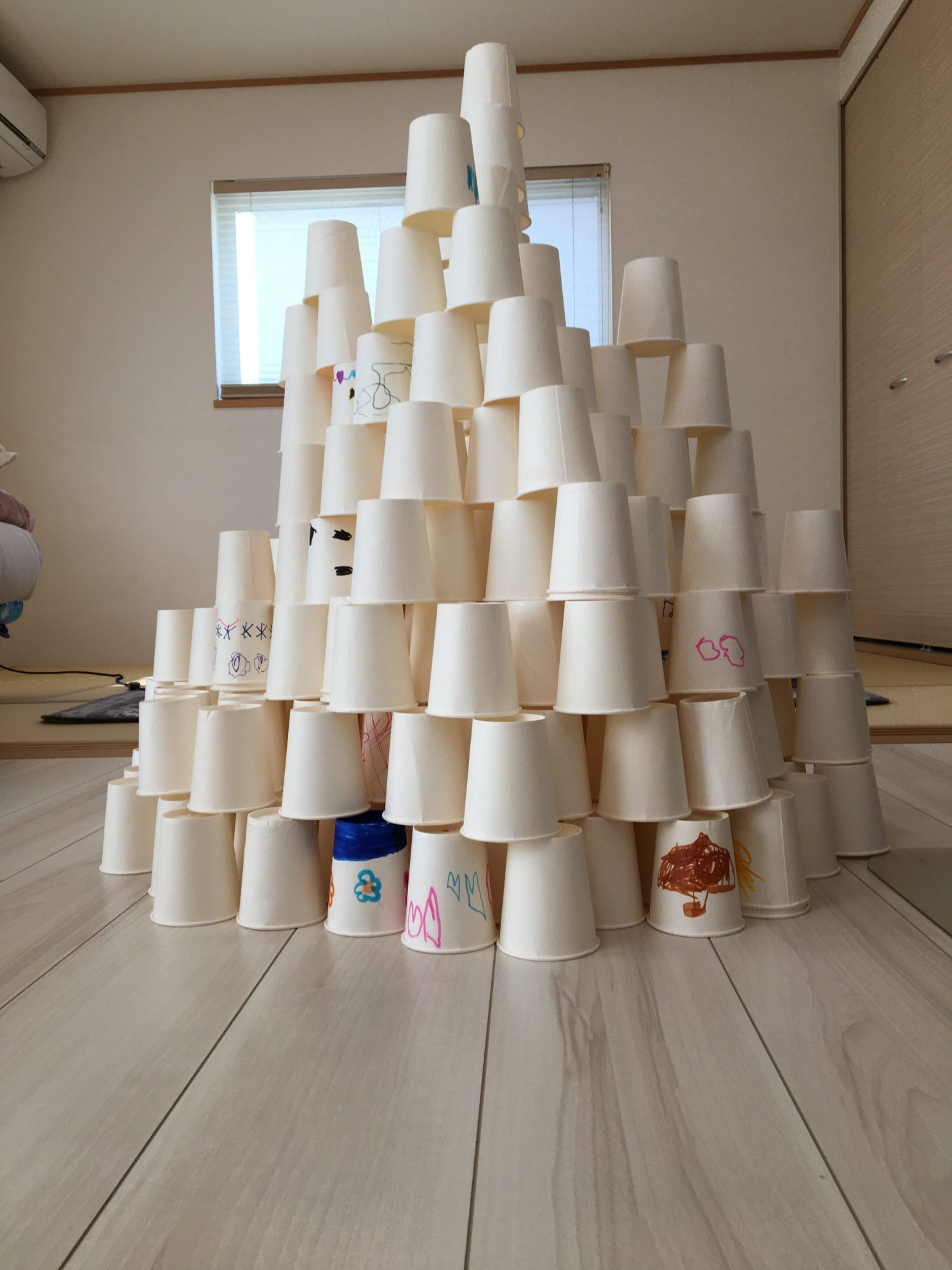 「320個の紙コップを並べるのも、積み上げるのも、崩すのも、元に戻すのも楽しくて、時間があっという間でした!」とのこと、こんなに喜んでいただけてありがとうございます!