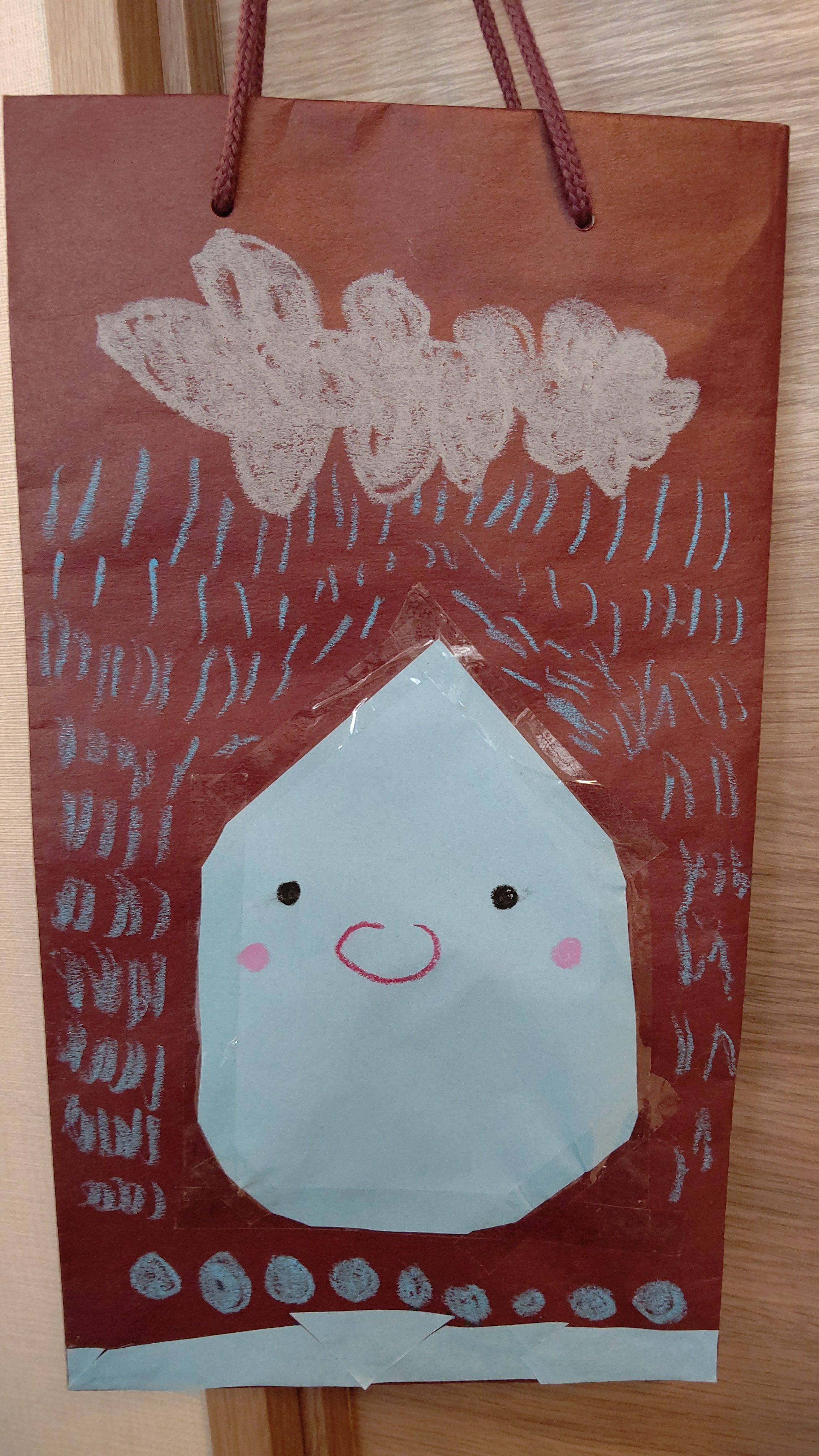 縦長の袋を使い、雨が振っている様子を描きました。