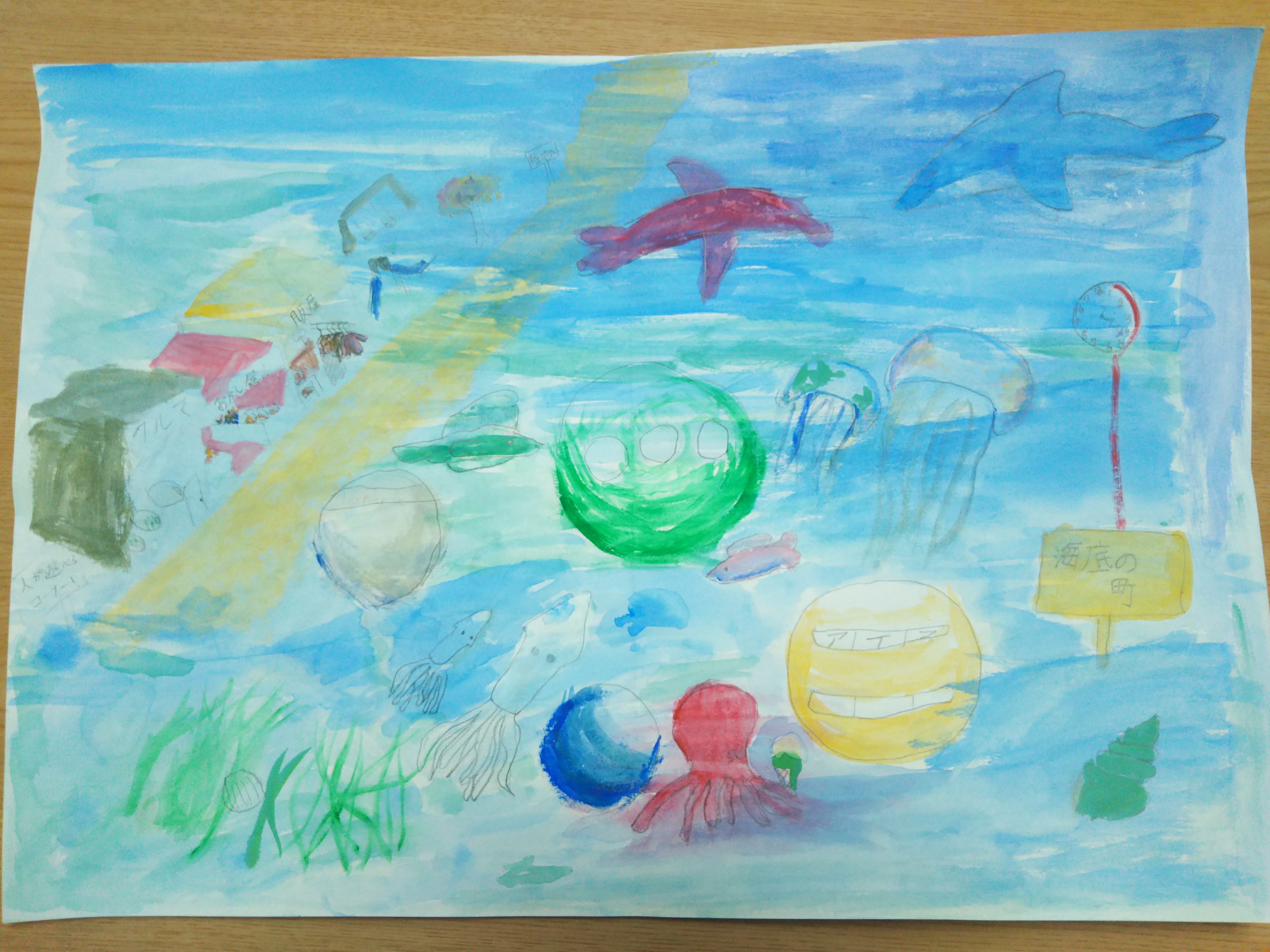 2021年3月9日 4:25 PM 地上と変わらず、公園やお店などの街並みが広がっているのでしょうか…✨ うす〜く溶いた絵の具を重ねた技、海底の雰囲気がバッチリ出ていてステキです! 海の生き物たち、かわいすぎます…🦑🐙🐬 ログインして返信する ↓