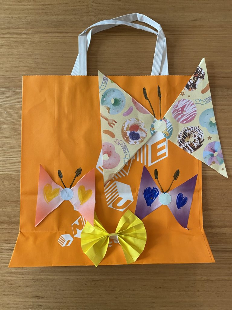 それが三角の折り紙を組み合わせたちょうちょを、