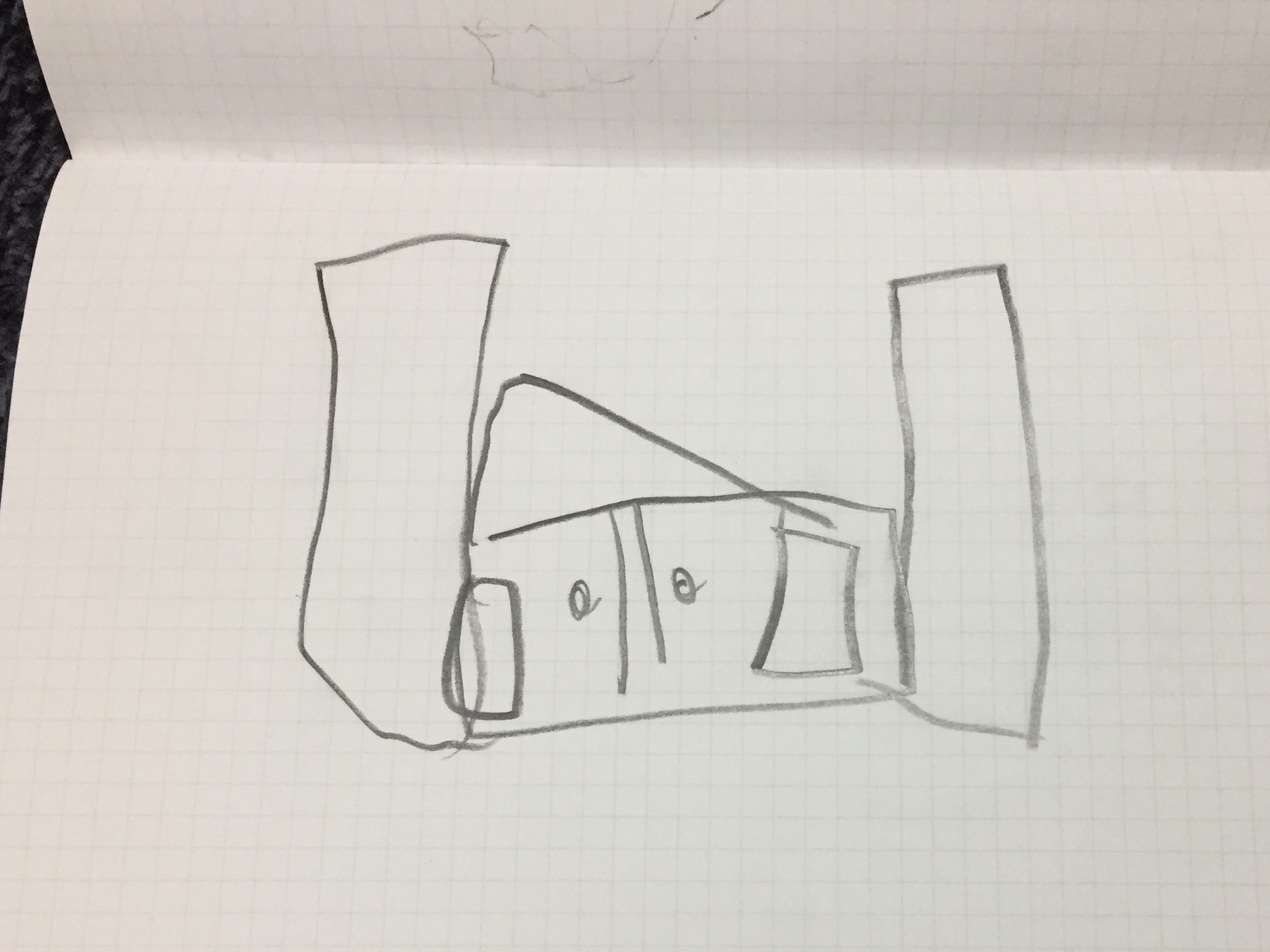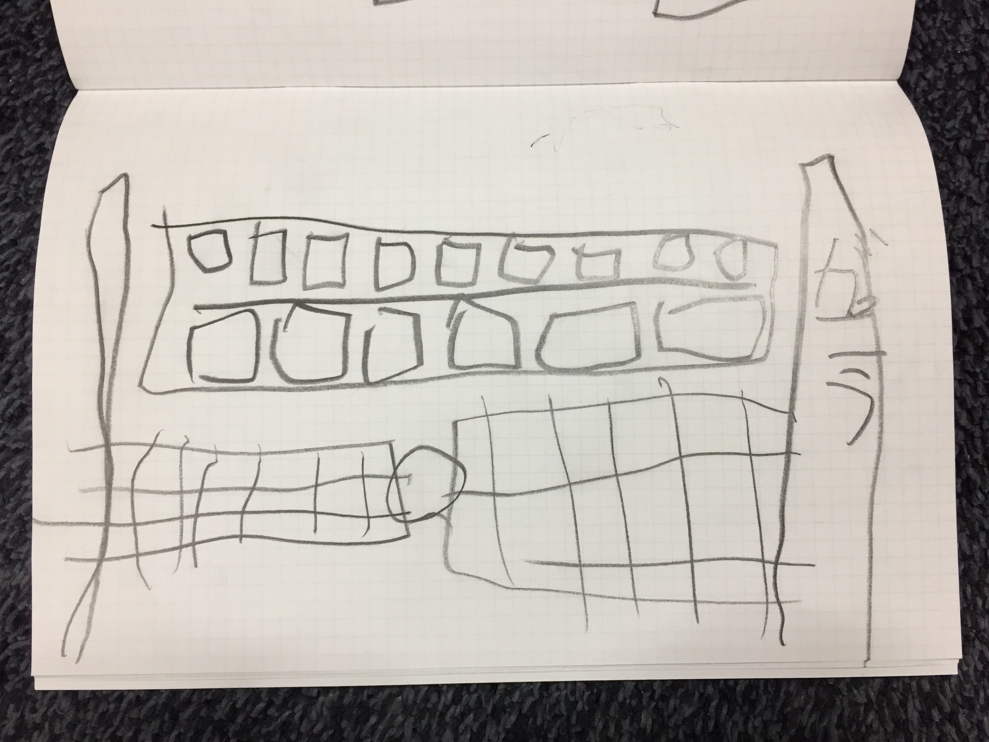 建物とか街とか作りたいと言っていたので、以前のシモダン先生の「建築家に挑戦」の動画を見てやってみました。春から小学生なので、「小学校にしたい!」と、ちゃんと設計図も2枚描いてました。
