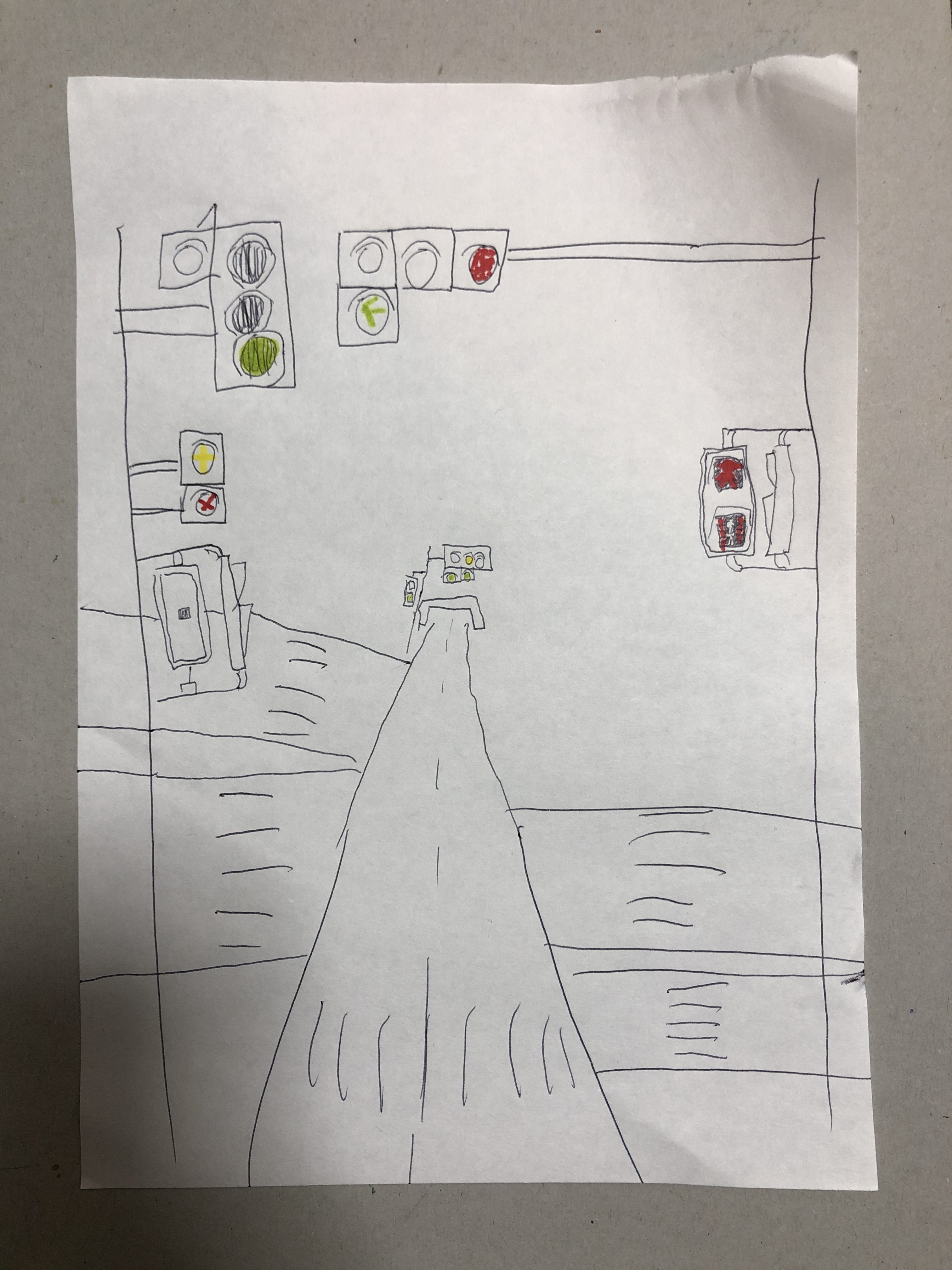 春休みは信号機の動画を見て信号機の絵をたくさん描いていました。信号機の描き分けや道路など上手に描けるようになってきて本人も楽しいようです。