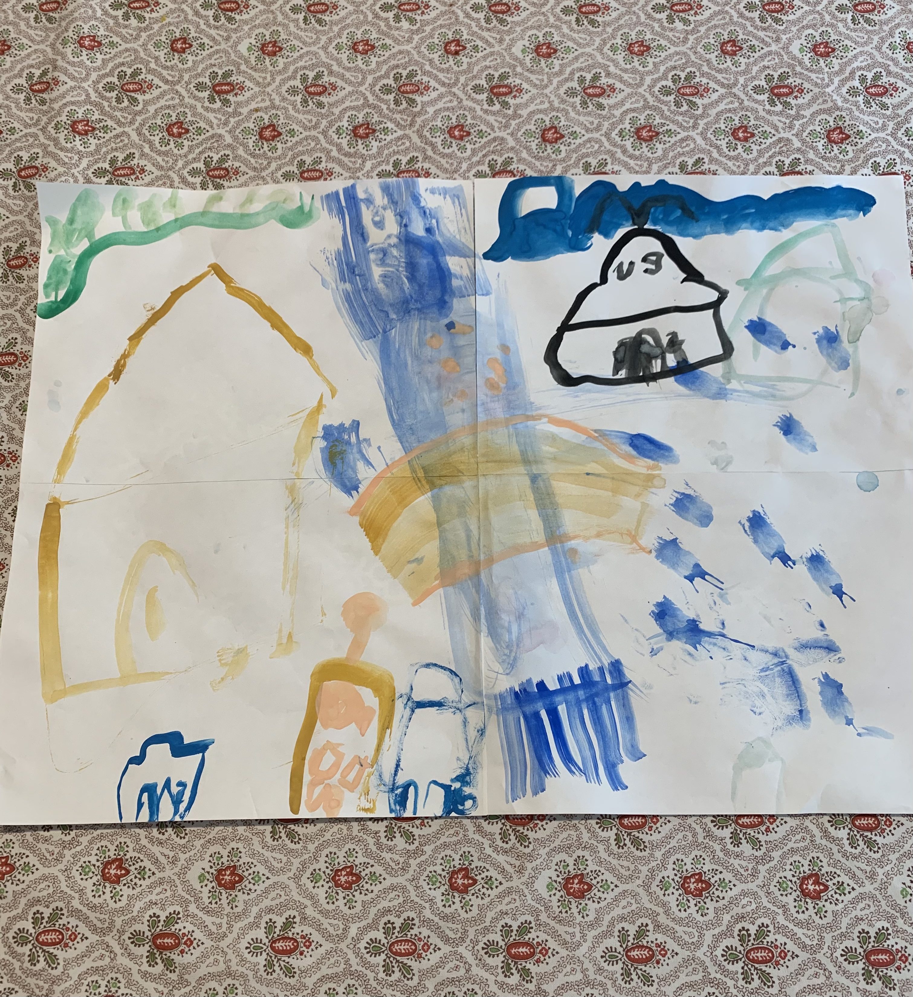 くるみちゃん、いろんなえのぐでかいているえをみせてくれてありがとう! まちのえはかみをつなげておおきなえになったんだね! かわをわたるはいがいいかんじだね。ねこちゃんはハケをつかってるんだね。おおきなかおがいいね。 ポストのおてがみはゆうびんやさんみたいだ!