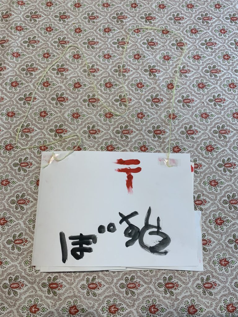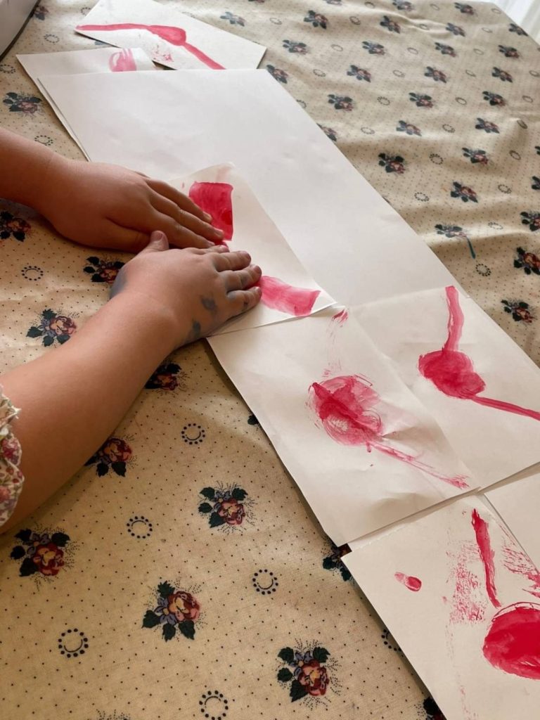 刷毛をおじいちゃん筆、おばあちゃん筆とよんで、たくさん模様をつけていました。お気に入りのピンク色ができて満足そうでした。