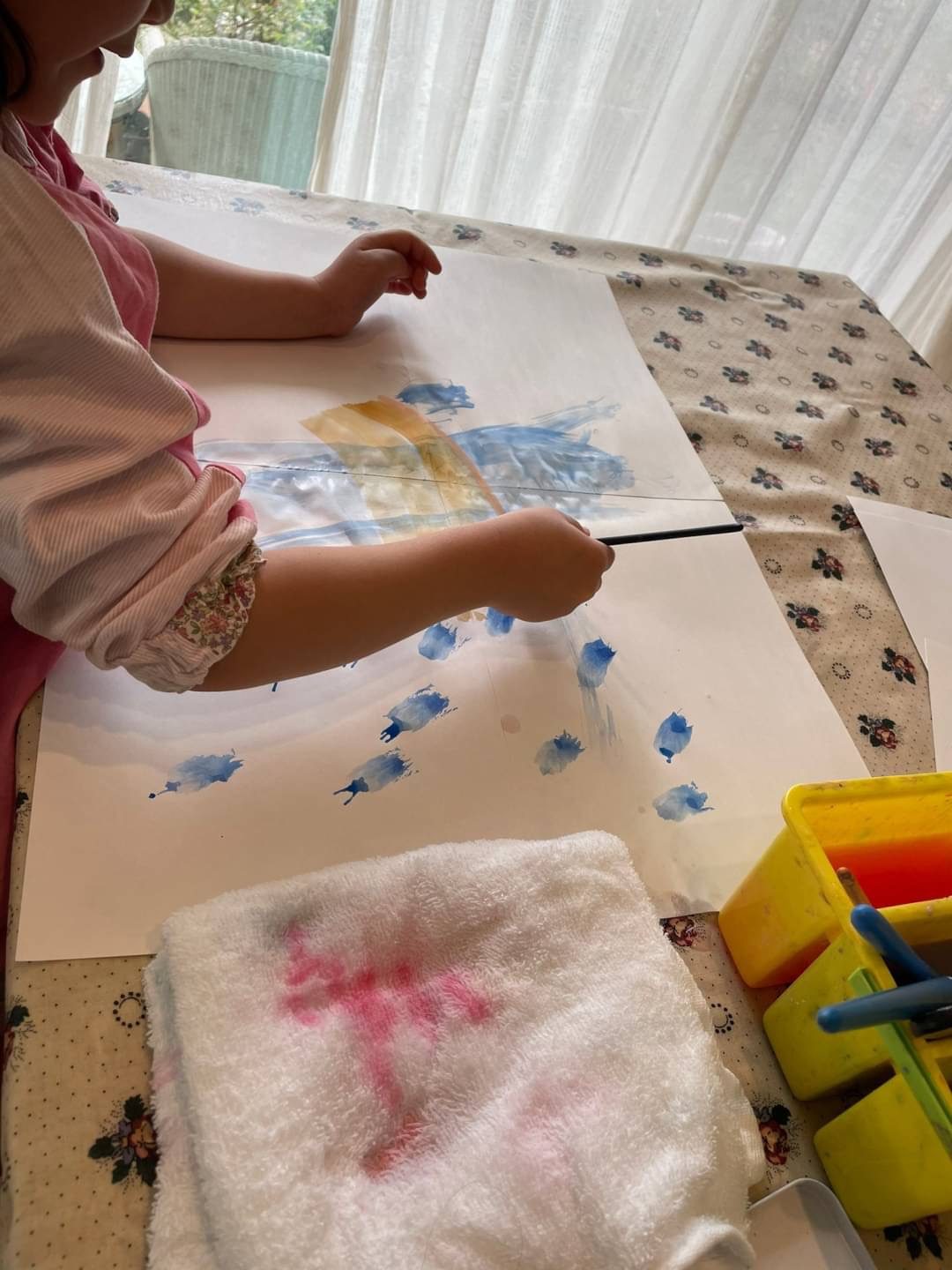 絵の具をしよう、kurumiちゃんはいつもやってくれているから