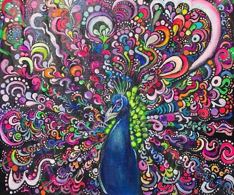 作品のあざやかさ、クジャクの堂々とした表情に、ひとつひとつの個性が輝く様子…見ていると勇気づけられます!!!