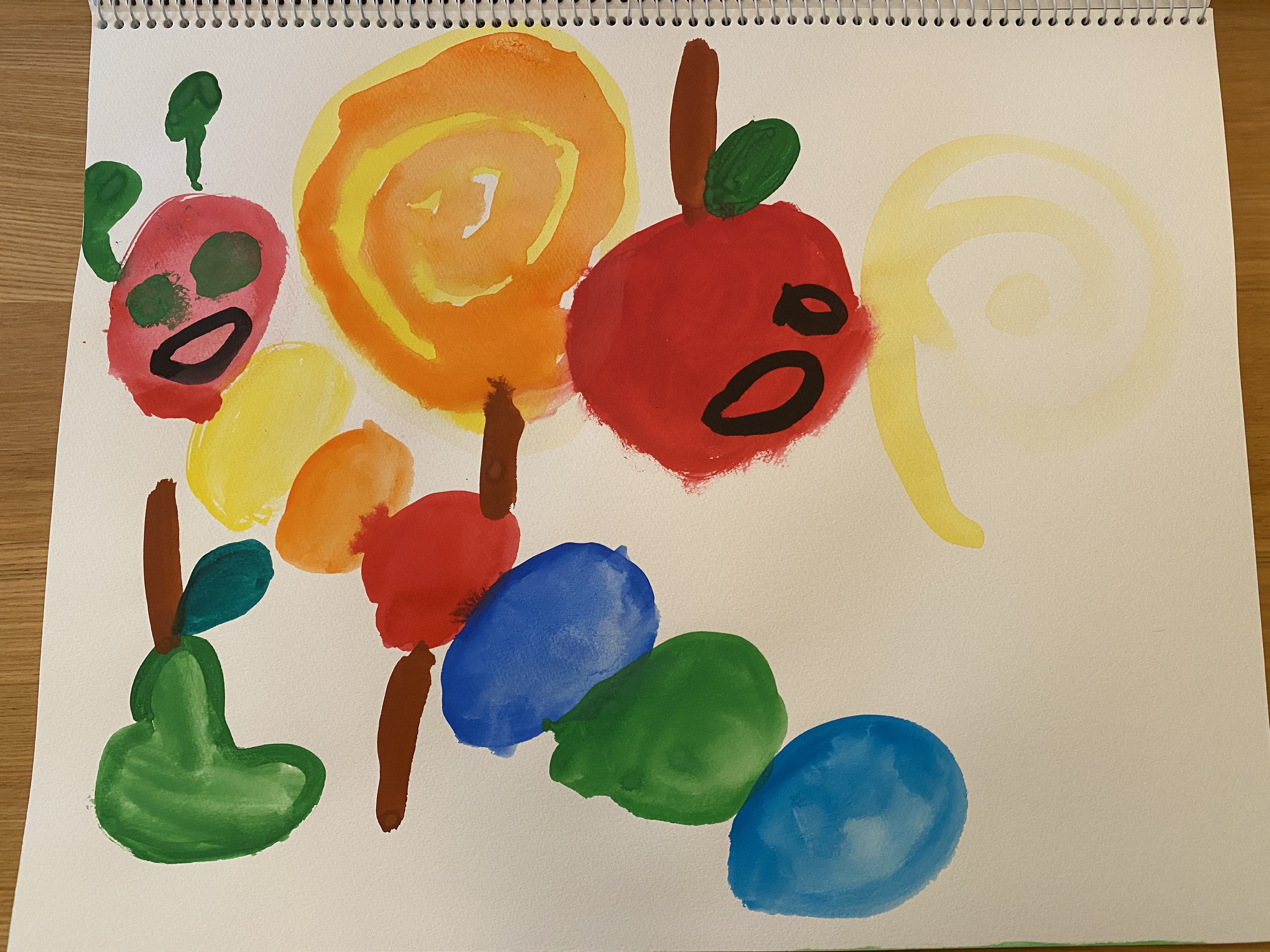 しおりせんせい チャイルドアートサポーター2021年4月17日 7:07 PM 絵の具でたくさん丸を描いてくれたんだね! にじいろのあおむしがおいしそうなリンゴを食べようとしている様子がすてきですね! ログインして返信する ↓