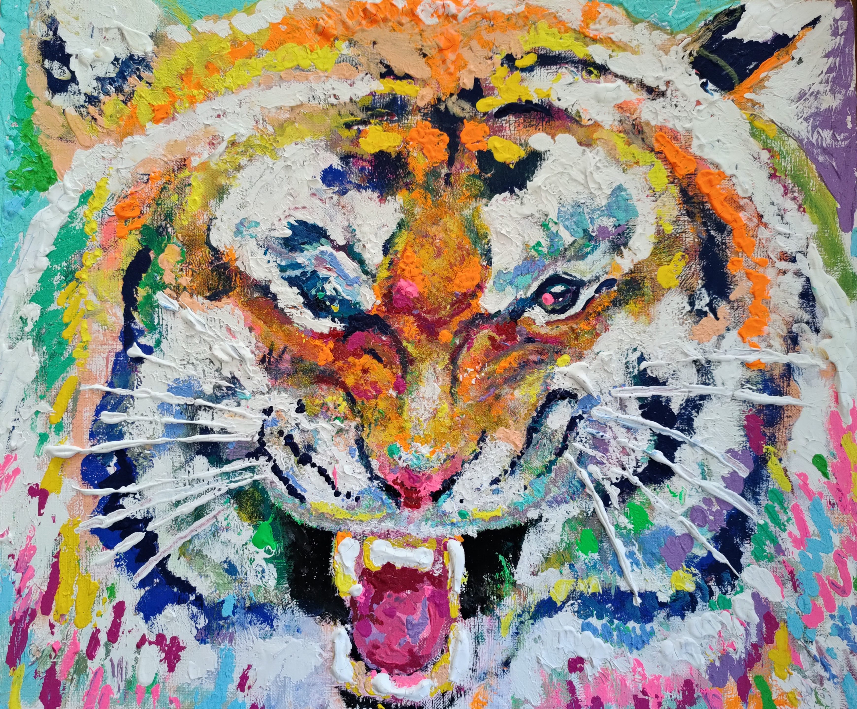 まさに、トラと真剣勝負の対話をしながら直接描いている感じが伝わってきます。