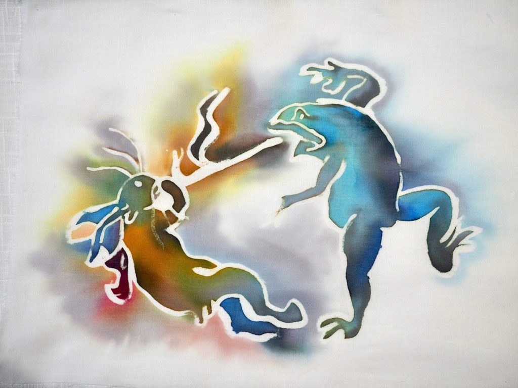 私はくまべ ちこさんの作品を見ていると・・・ろうけつ染めのテクニックはどうでもいいとまでは言いませんが・・