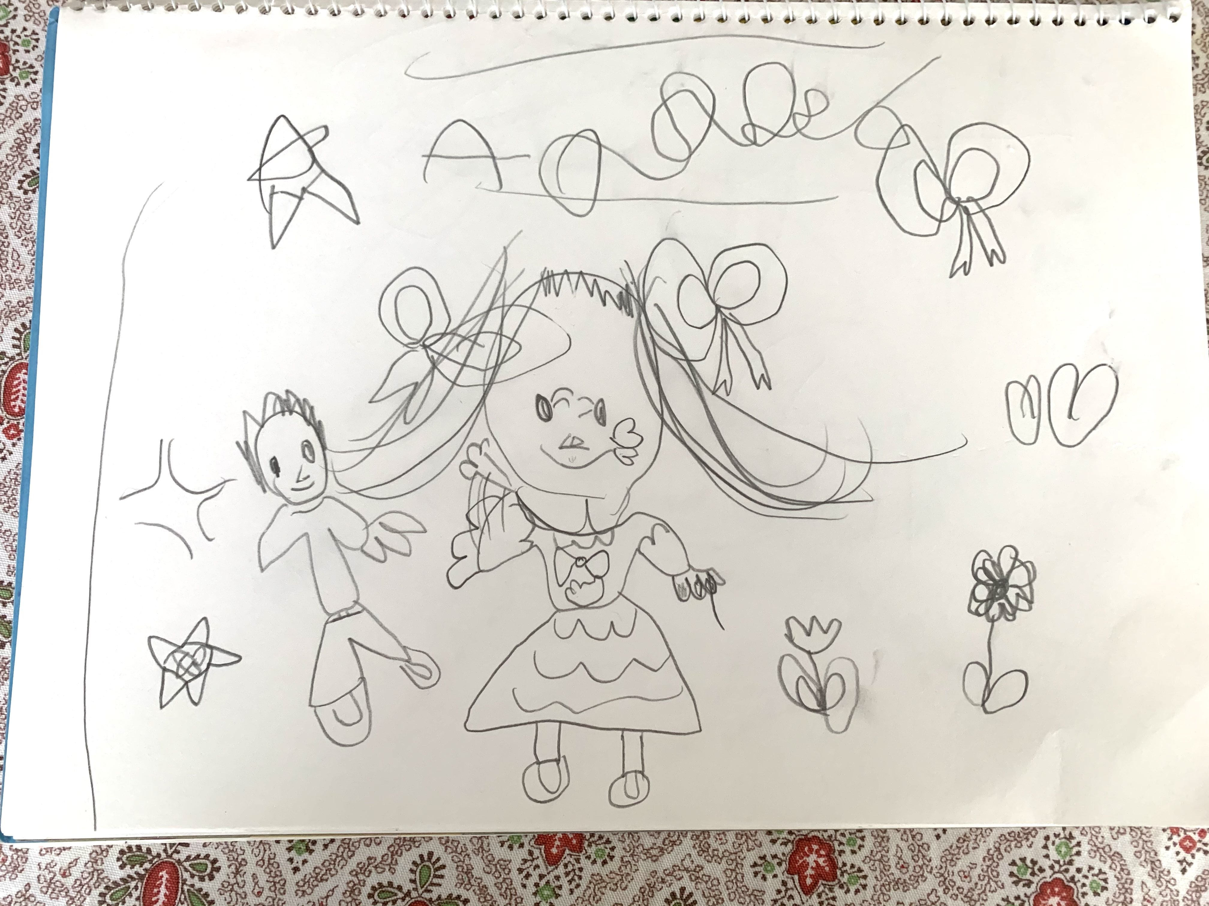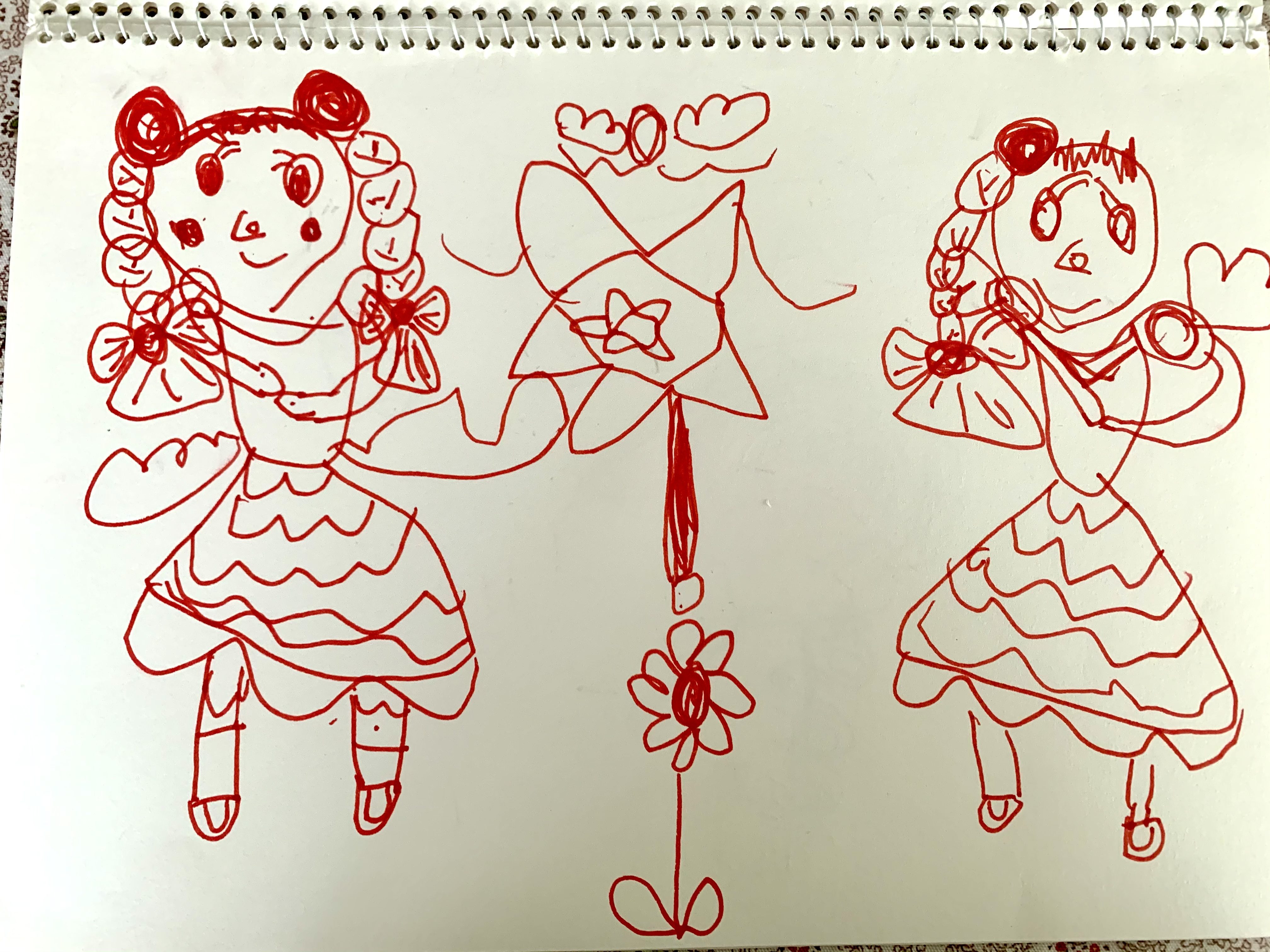 くるみちゃん、いっぱいおえかきみせてくれて、うれしいなあ! おんなのこをたくさんかいてるね! かみのけや、おかおのかきかたがどんどんかわってきていて、すごいですね! バラのはな? をてでもっているところは、すごくホンモノらしさがでていて、ビックリ!
