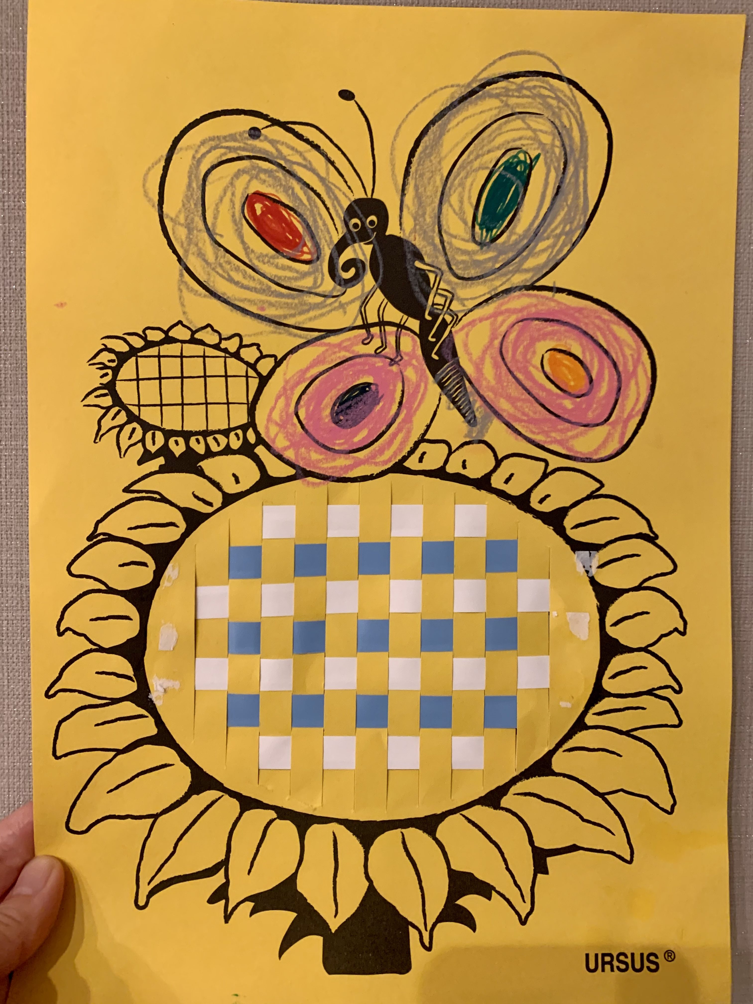 1、2枚目は絵柄の切り込みに細い紙を織って模様を作ったもの。かなり集中して、途中挫けそうになりながら最後まで頑張っていました。