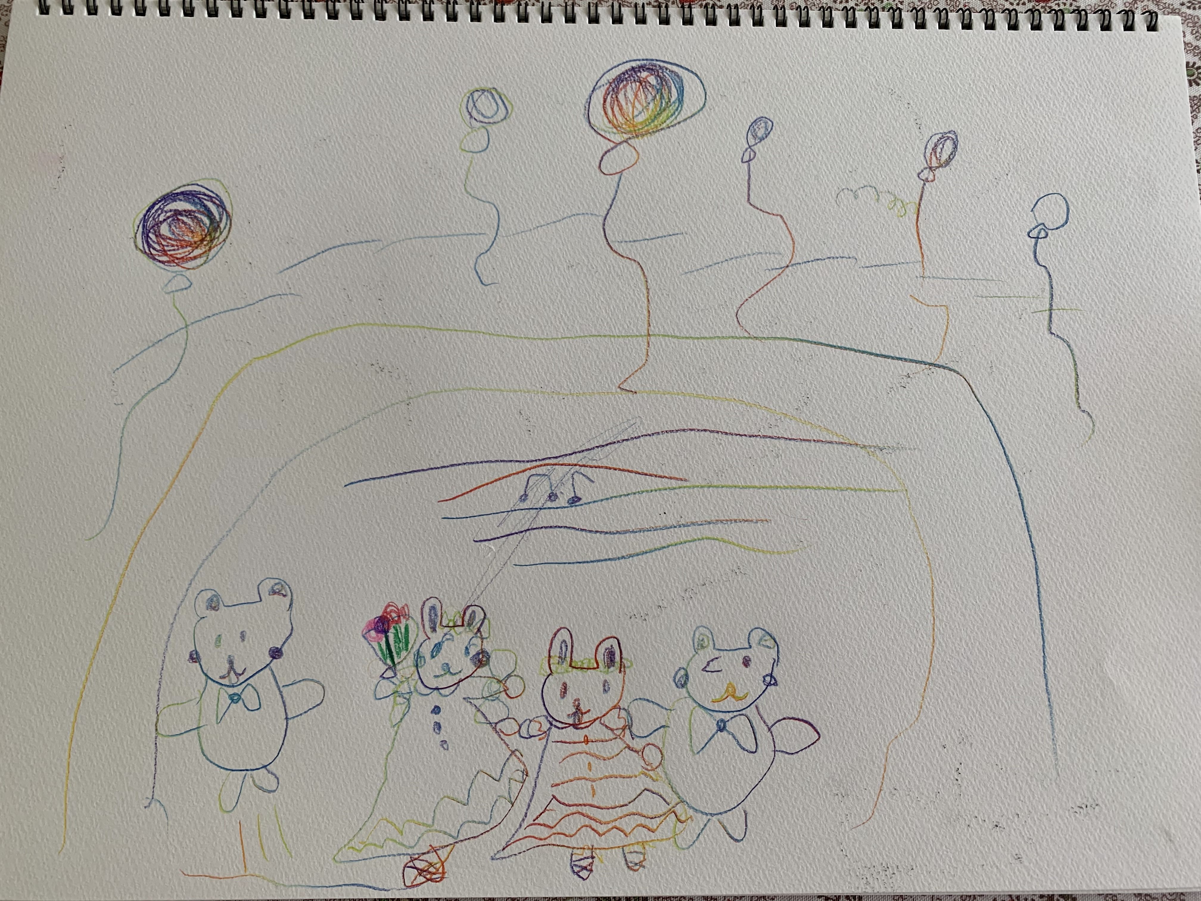 お絵かきは、本人の空想の中の、ある場面を描いているようですが、時々、夢の中ともリンクしているようです☺️
