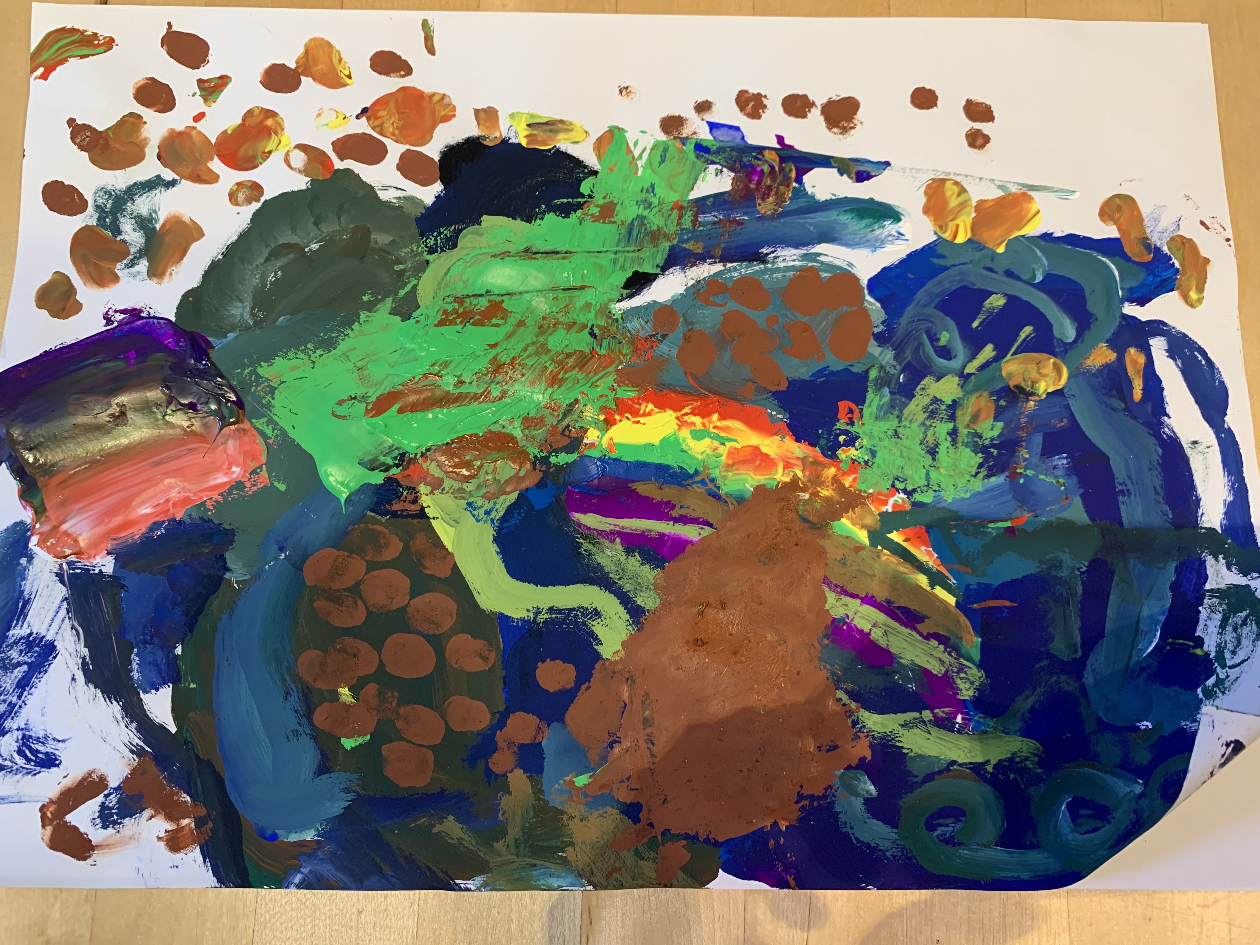 たかとくんが、アクリル絵の具を楽しみながら、いろいろ実験して描いてるのが、伝わってきます。