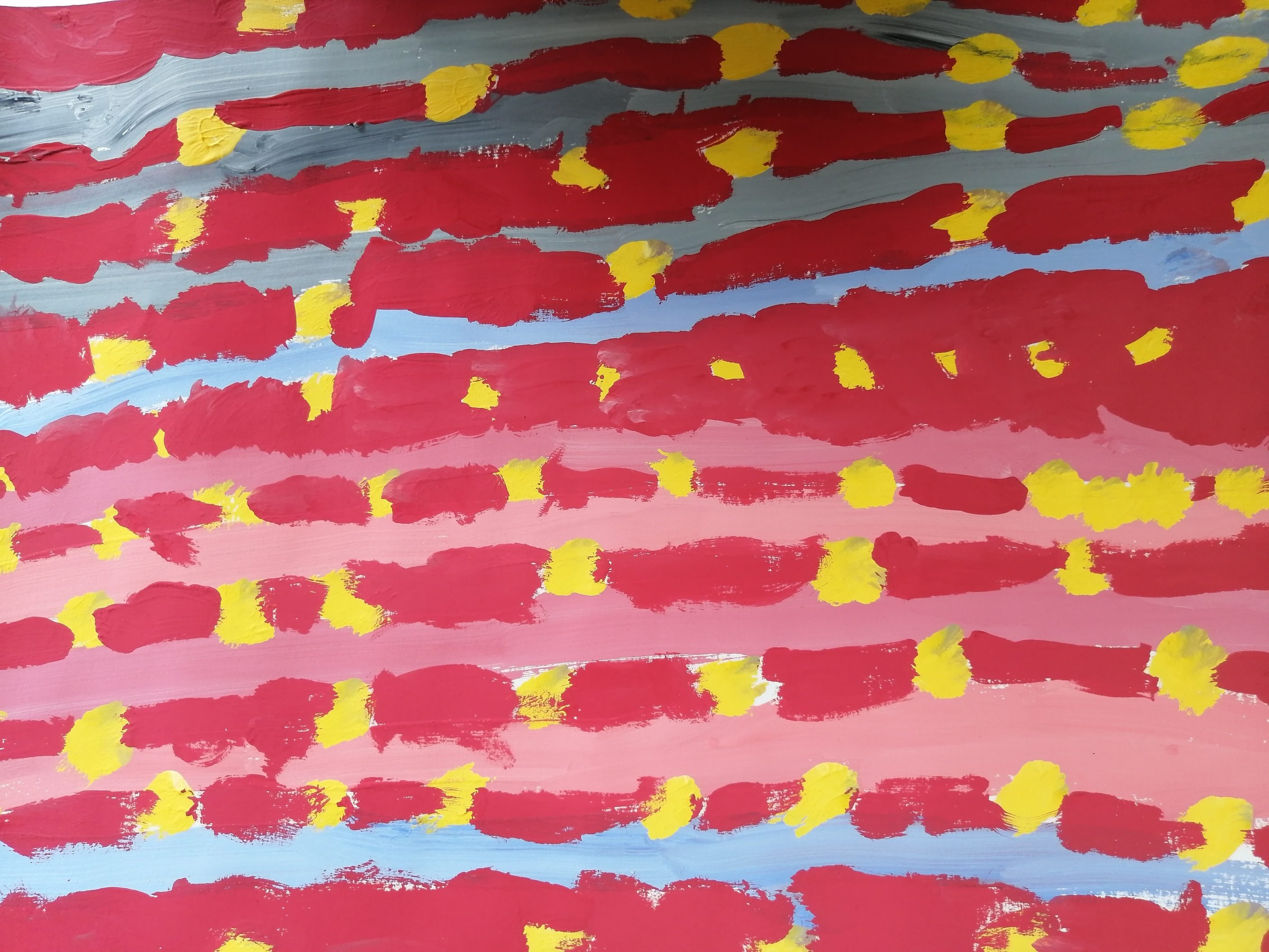 アクリル絵のぐをつかいはじめて、1年いじょうたちます。なんかいも色まぜをして、さおちゃんの色がたくさんはっけんできていますね!