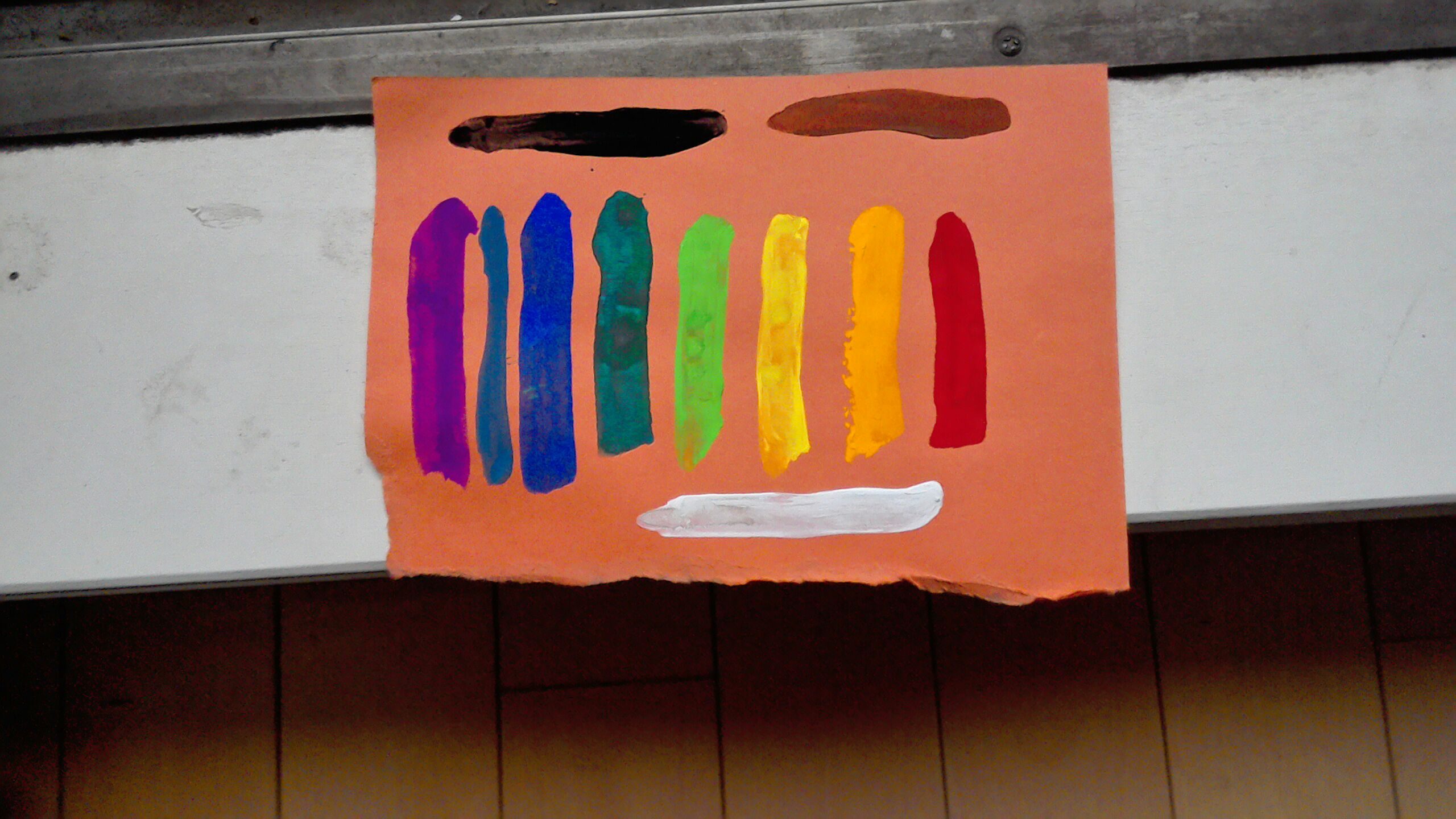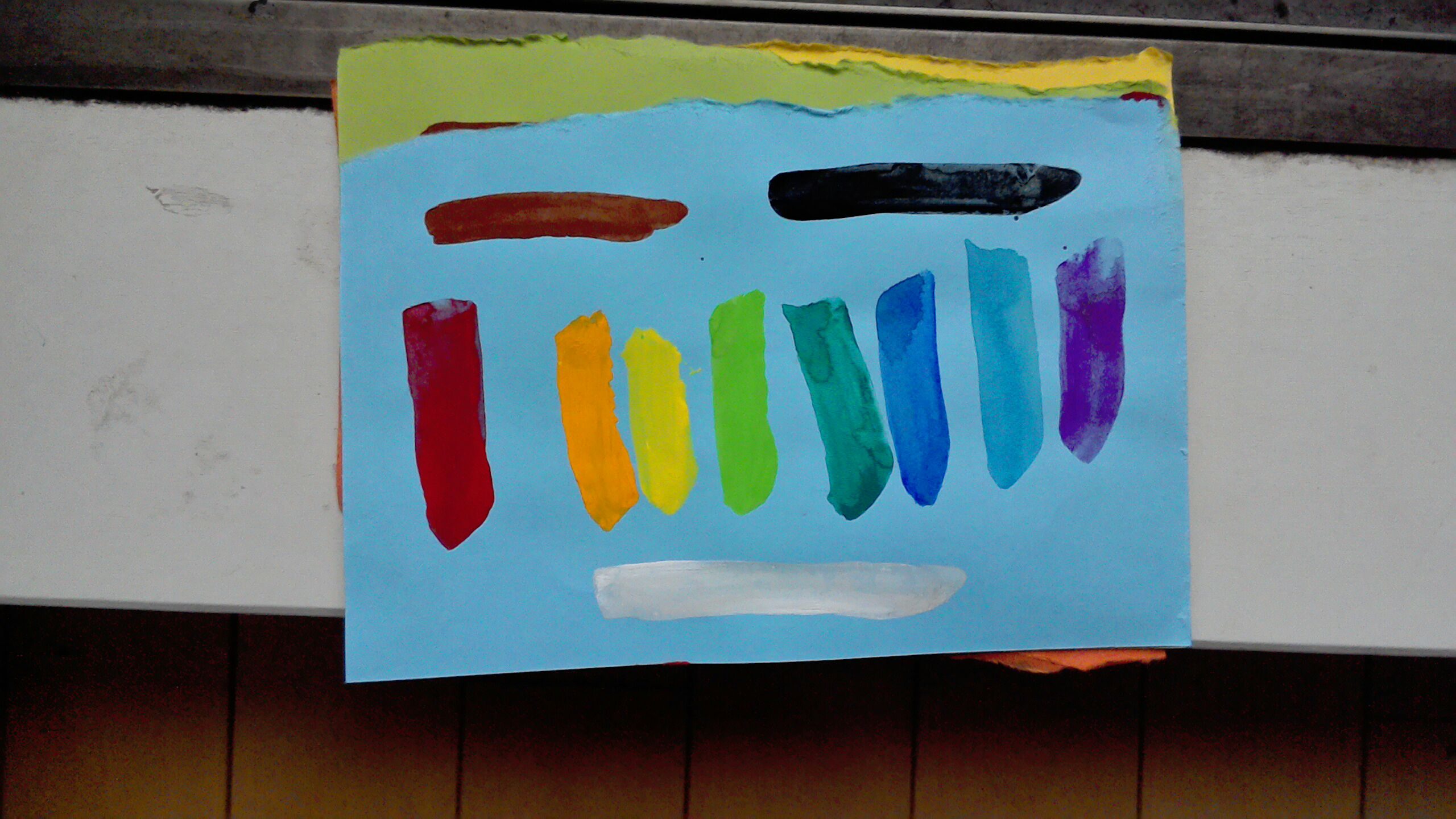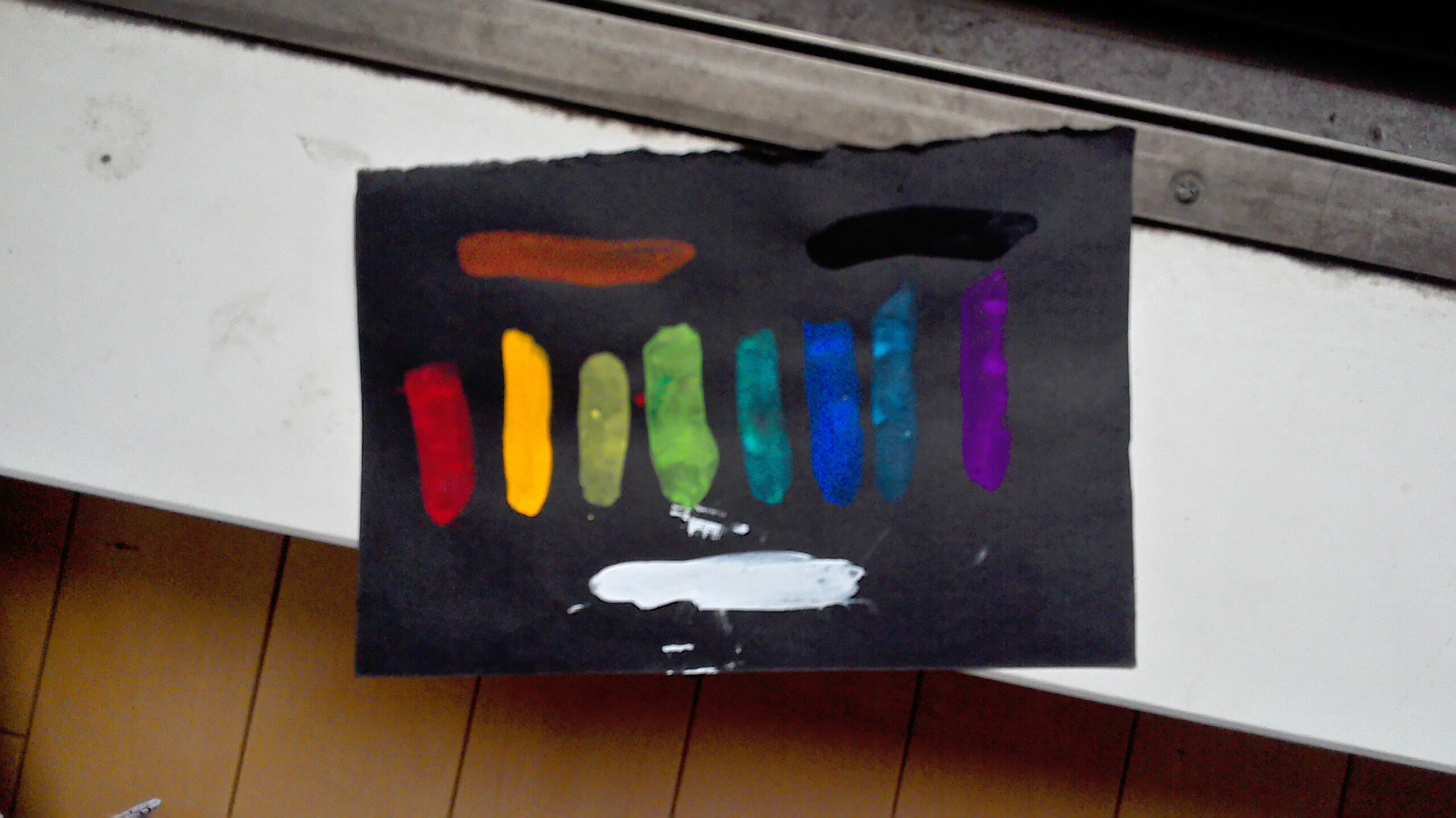 色画用紙を用意して、1枚ずつアクリル絵の具を塗りました。