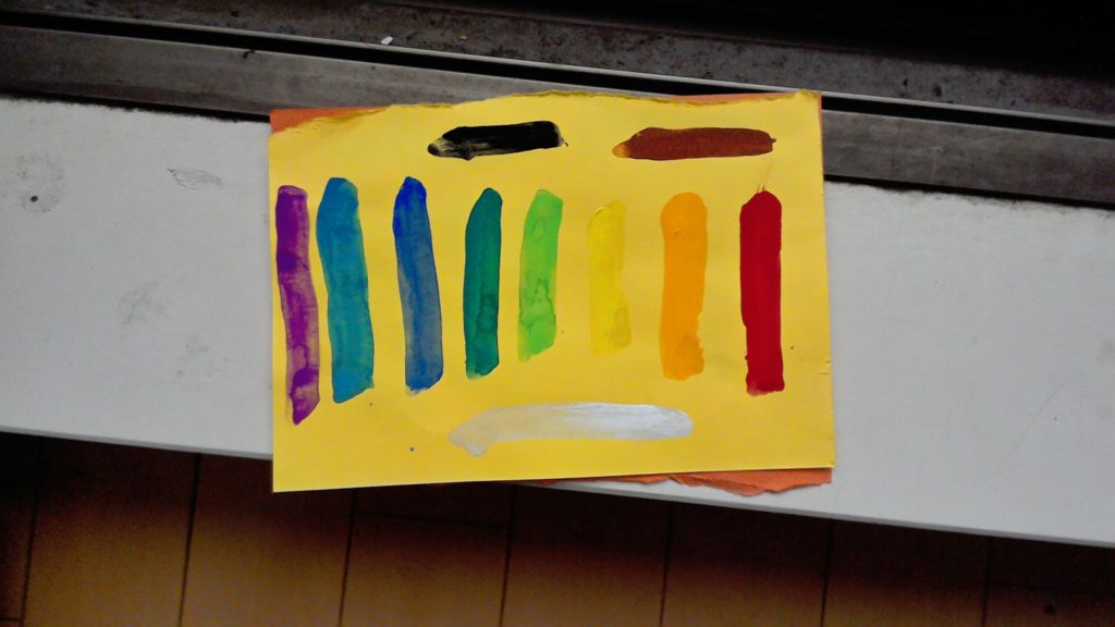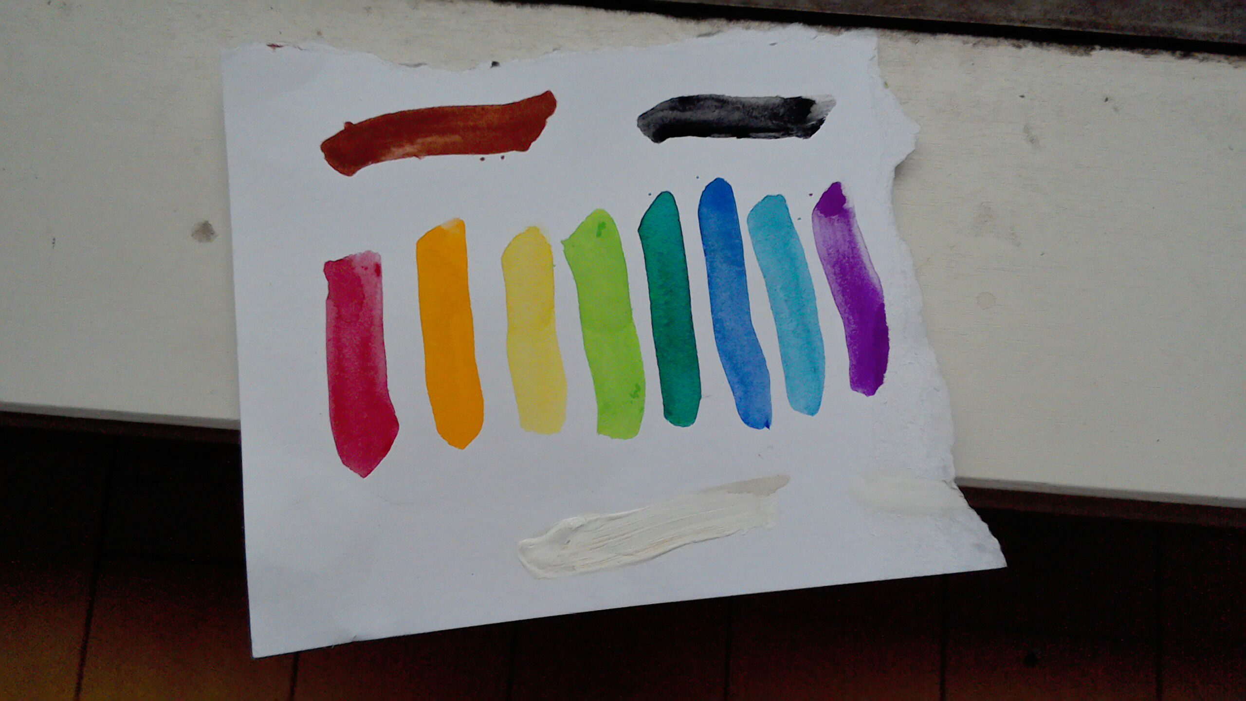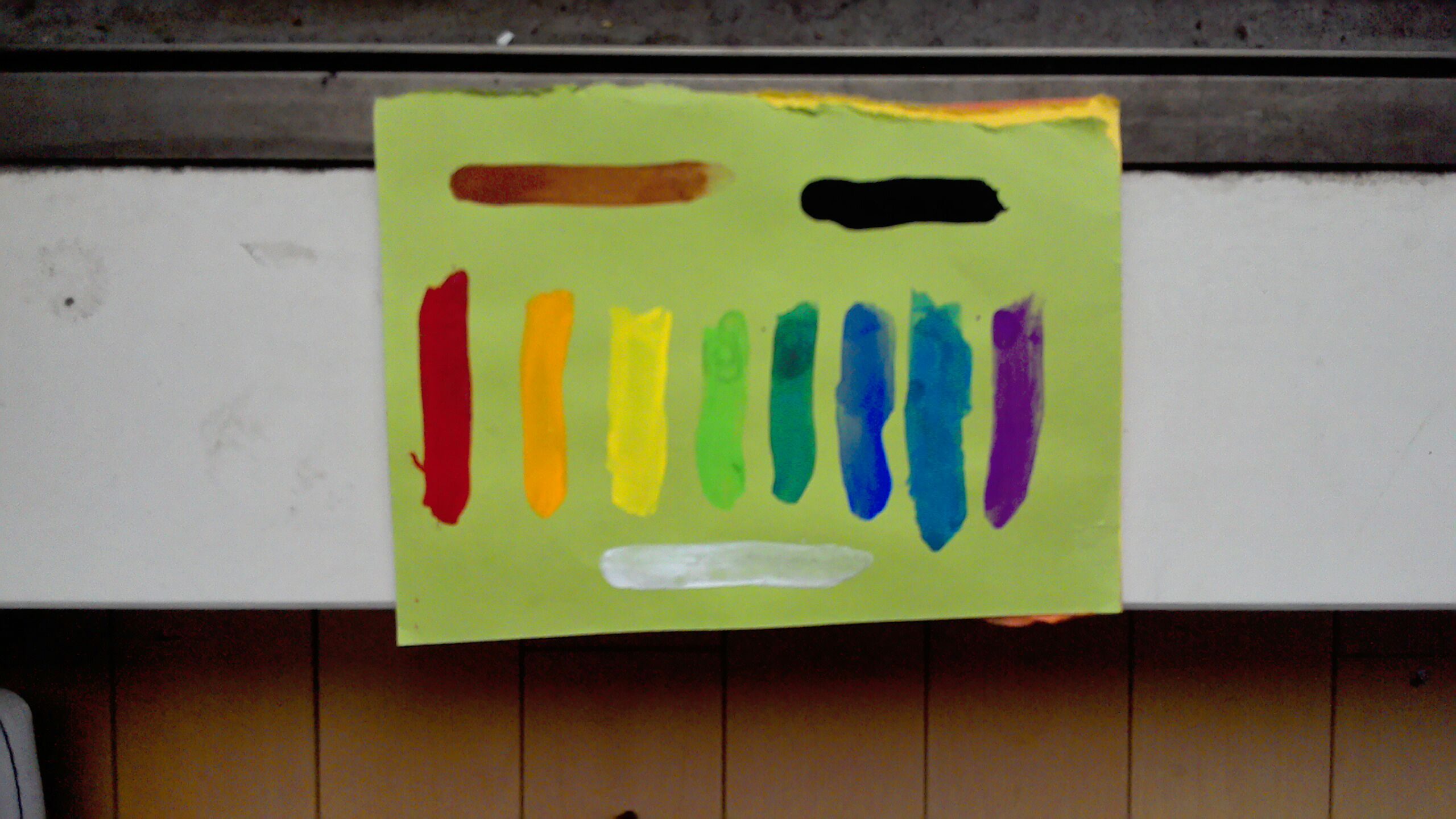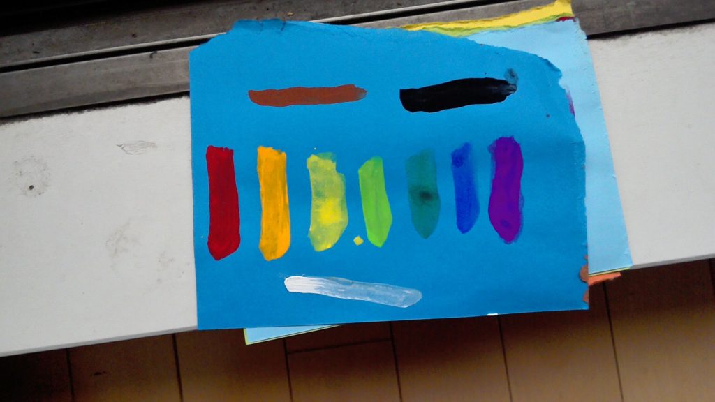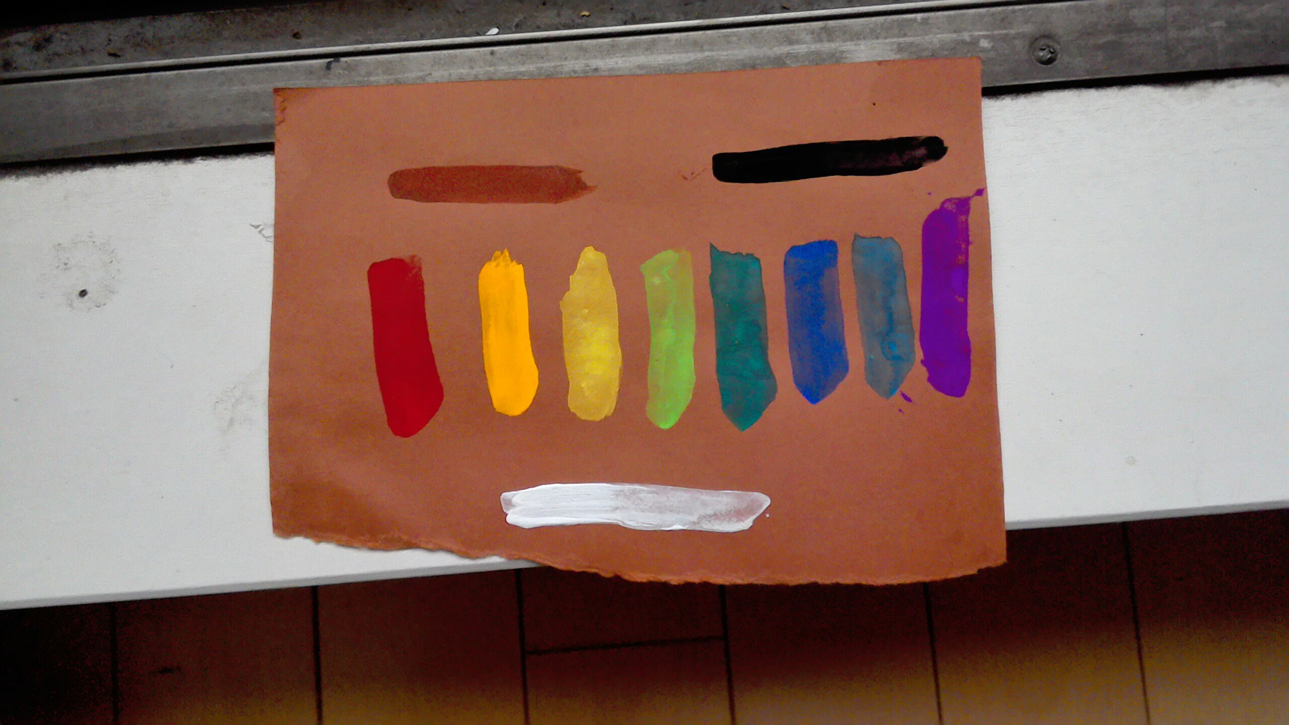 色画用紙を用意して、1枚ずつアクリル絵の具を塗りました。