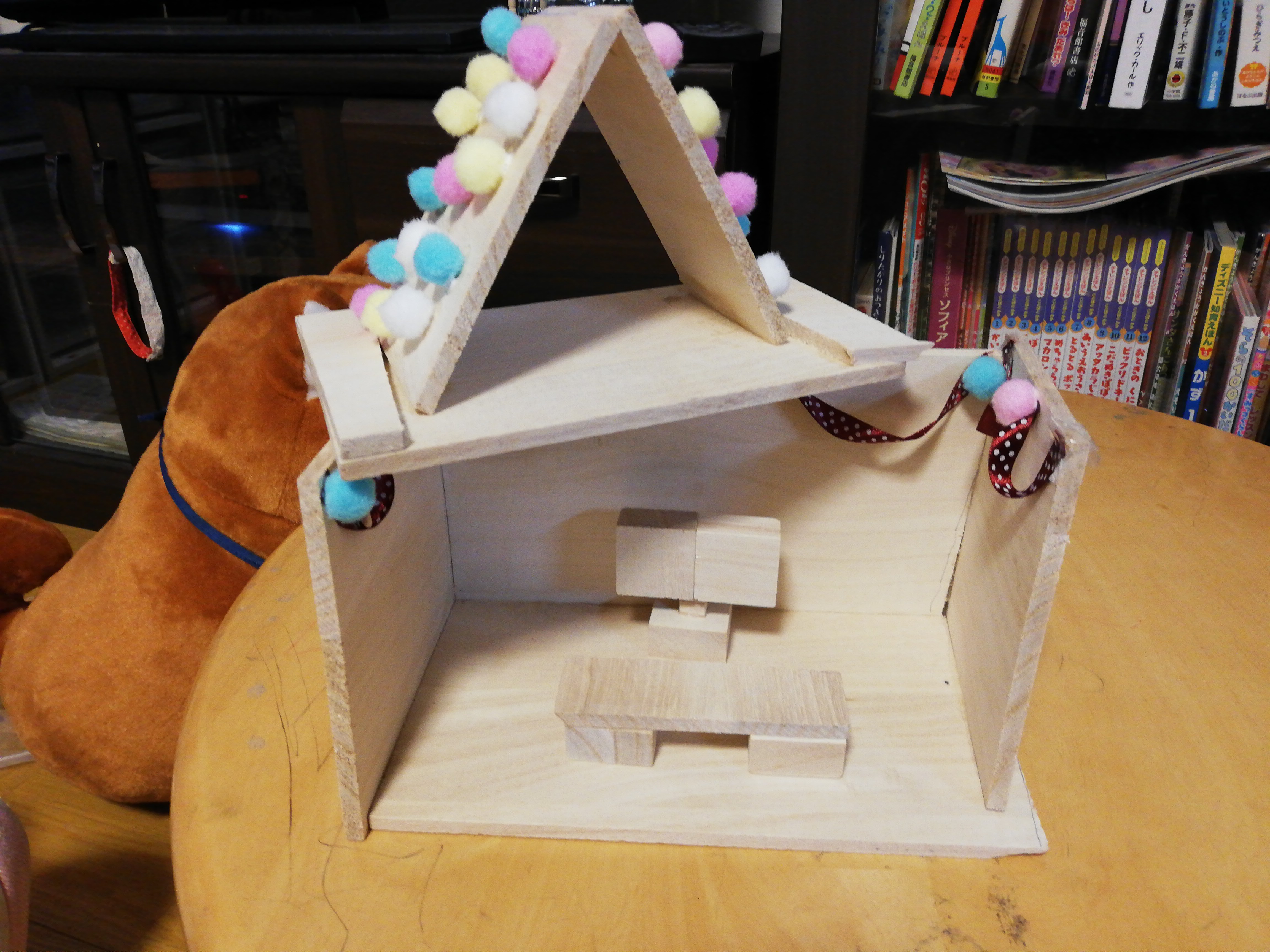 おおお! すごいね! ここまですすんでるんだね。テーブルなんかの家具もあってホンモノみたい! じっくり時間をかけていい作品にしあげてね