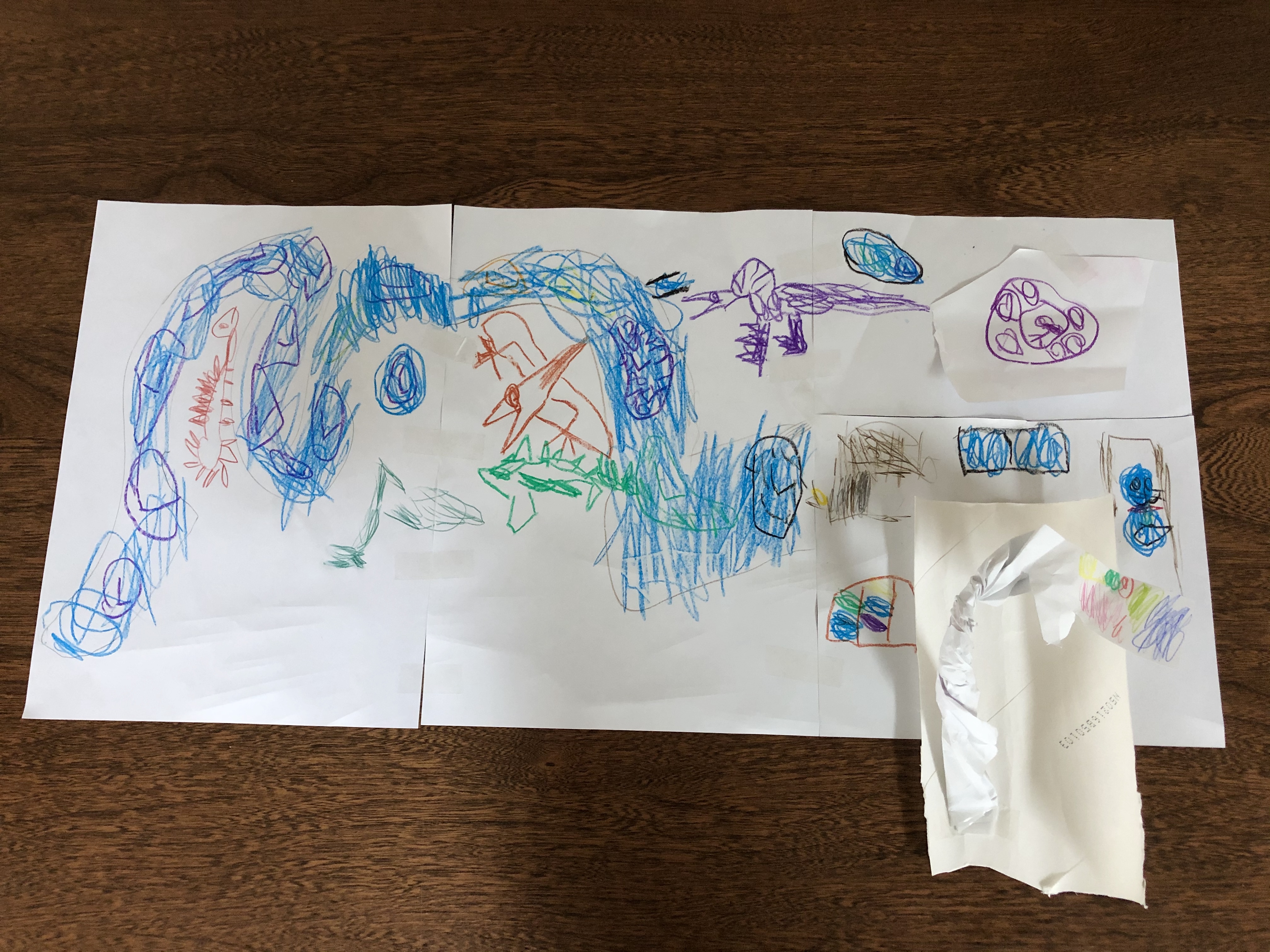 がく君。沢山描いてくれてるね。ありがとう。恐竜沢山。楽しいし、きれいな色だね。
